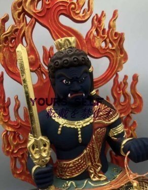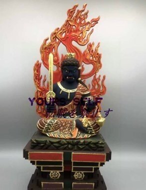 珍品 高31cm 不動明王 仏像 座像 桧材製 極彩色 仏教工芸品 人気の仏像 仏師手仕上げ品