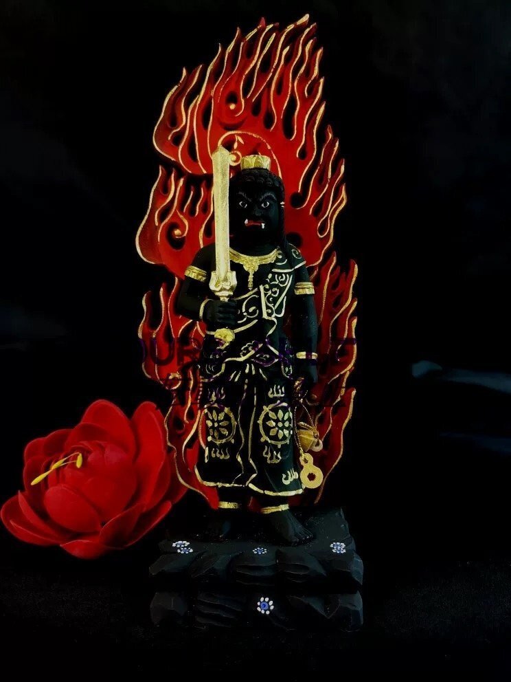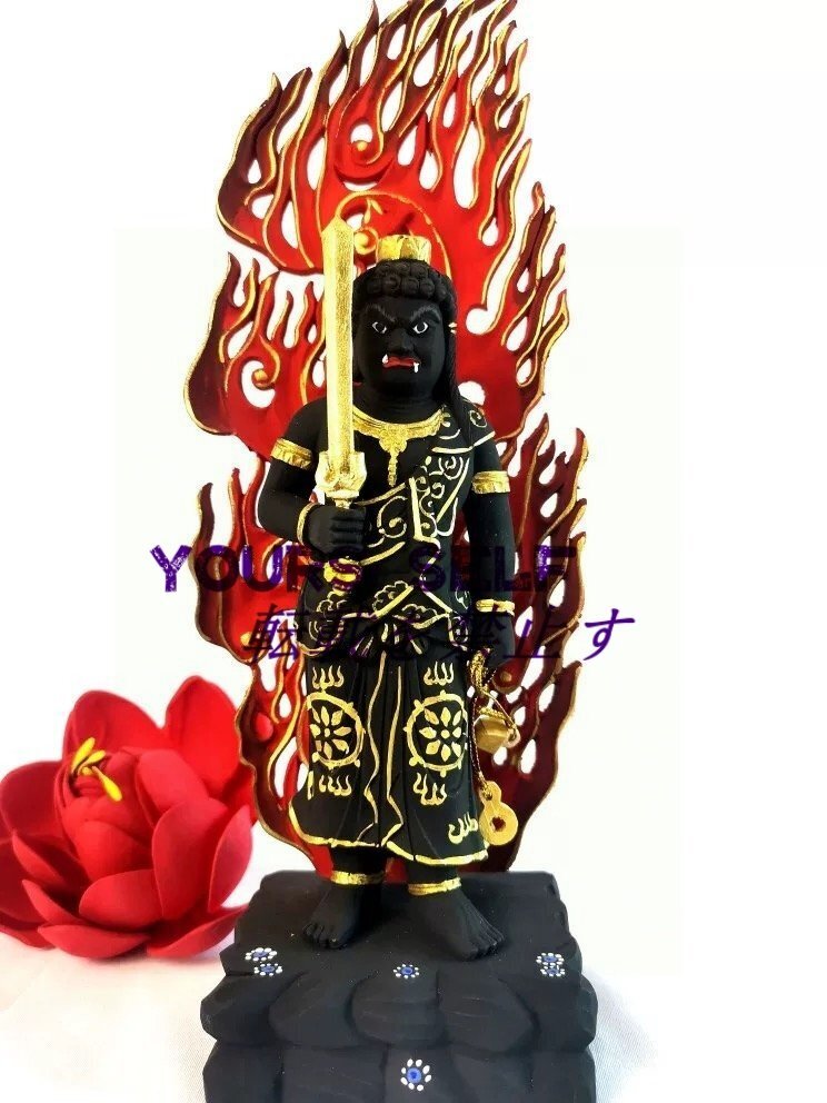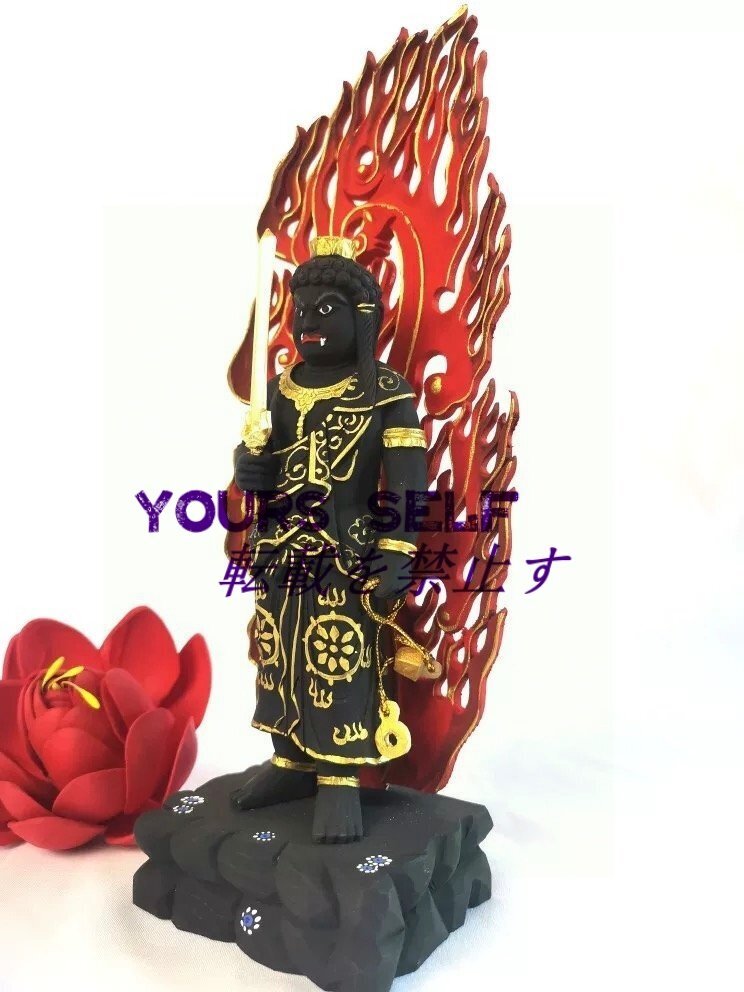 不動明王立像 木彫り 仏像 桧木彩色 火炎光背 お守り本尊 干支 酉年 高22cm