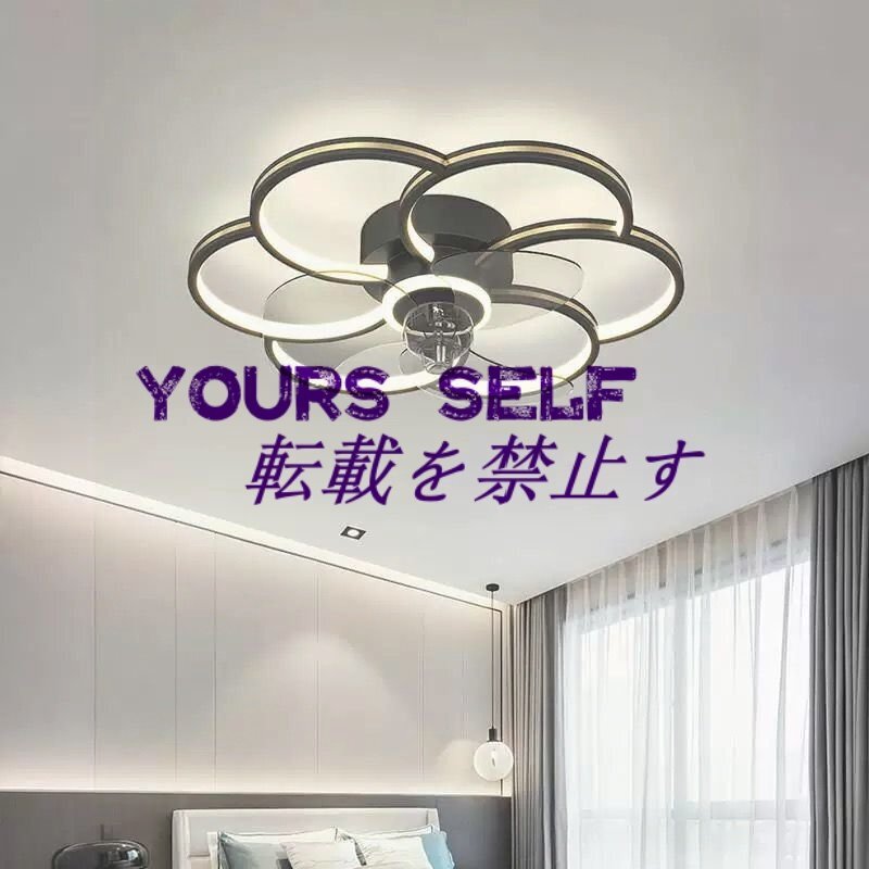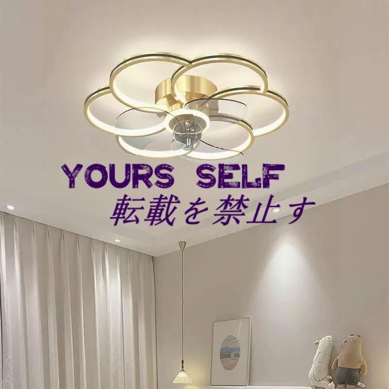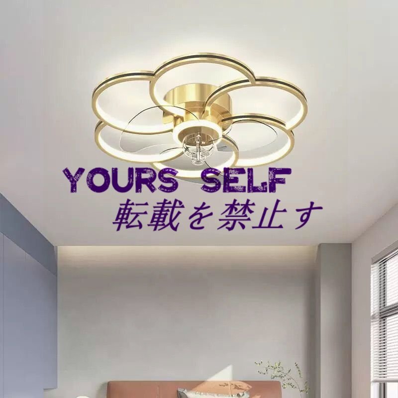 強くお勧め★LEDシーリングファンライト リビング照明 寝室照明 天井照明 無段階調光調色 リモコン付 花型 【ゴールド】