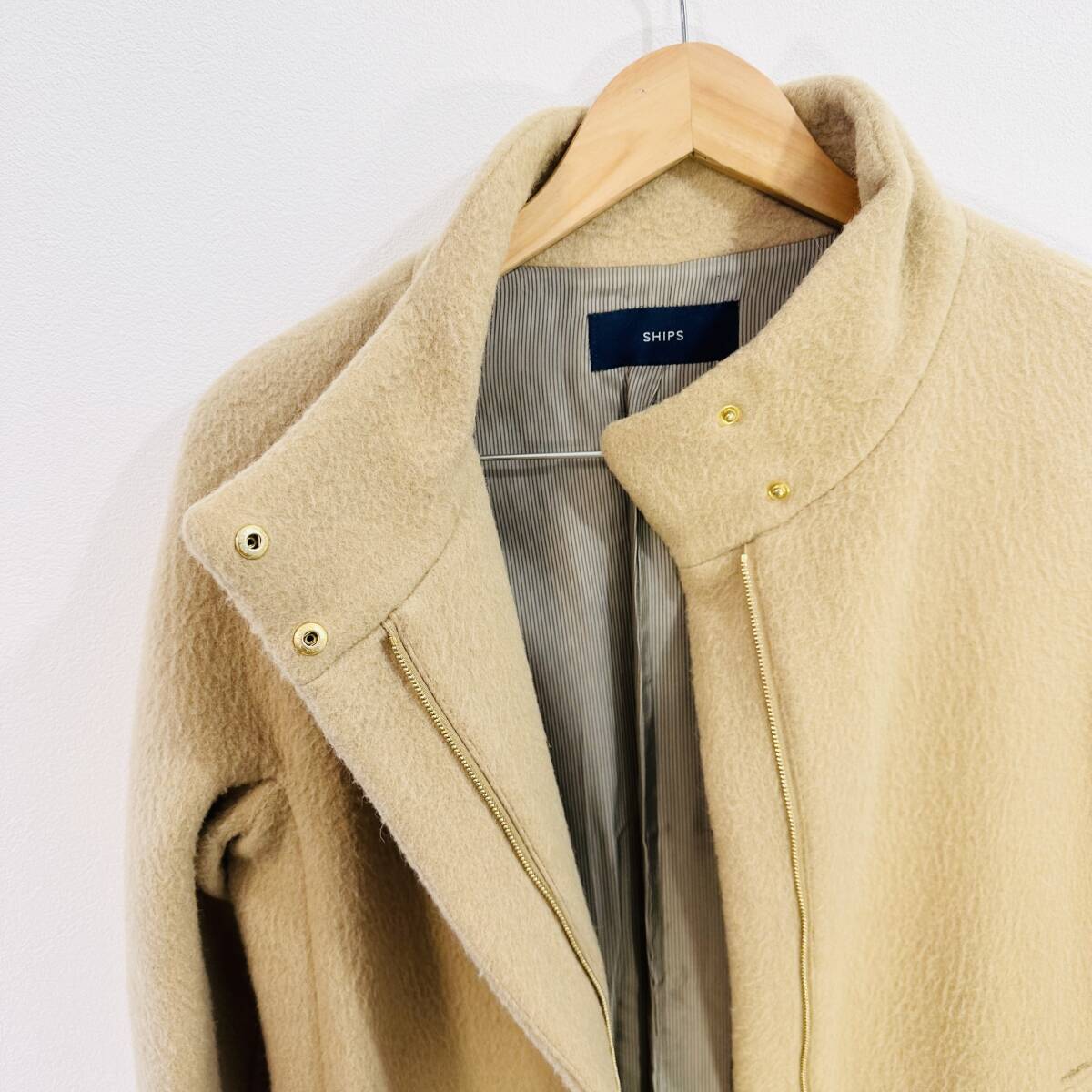 f1486ii SHIPS(シップス) サイズ36(S位) コート ロングコート ハイネック ジップアップ ベージュ系 レディース アルパカ