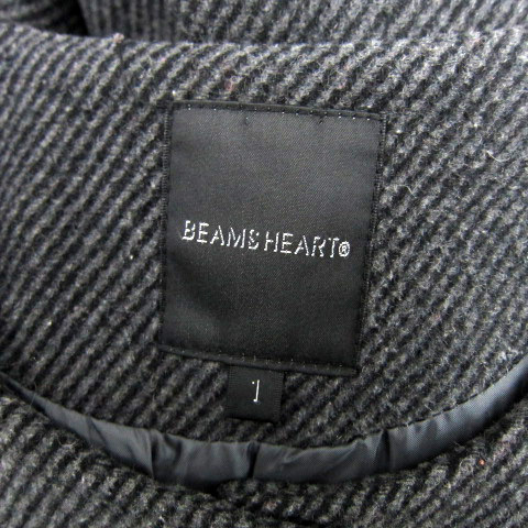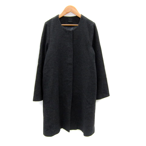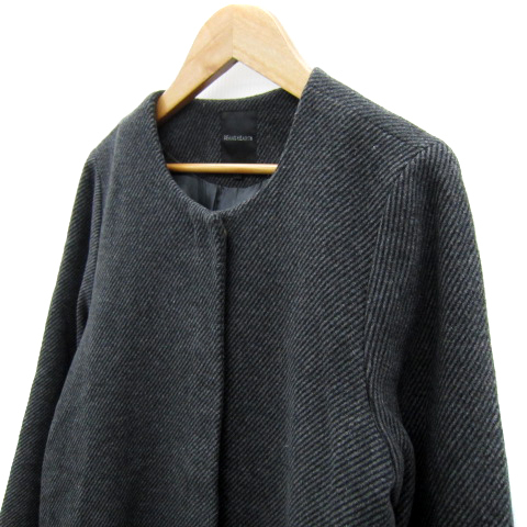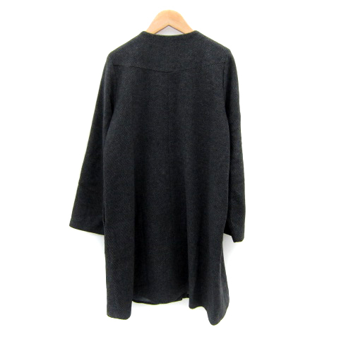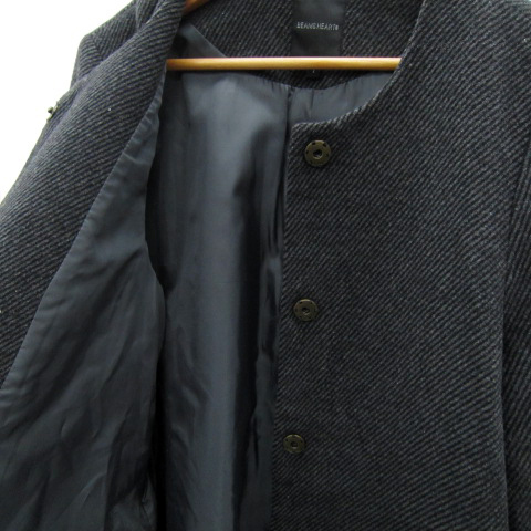 ビームスハート BEAMS HEART ノーカラーコート ロング丈 ダイアゴナルストライプ柄 1 グレー 黒 ブラック /SY7 レディース
