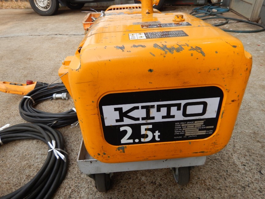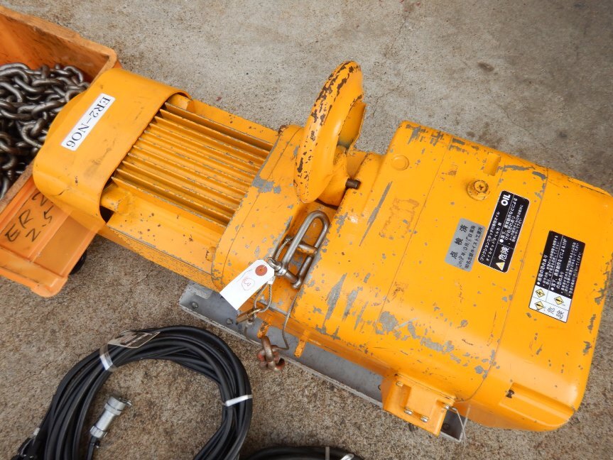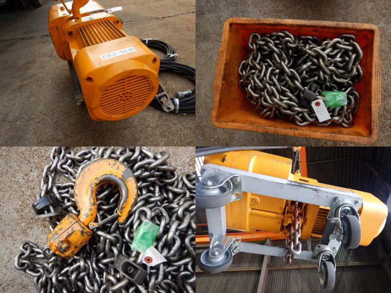 即決税込 中古保証付 キトー 電動チェーンブロック キトーエクセル2.5t ER2-025S 揚程20m リモコンコード10m 電源コード10m フォークリフトがない場合は 西濃運輸営業所止 電話番号必須 法人様宛で到着場所に フォークリフトがある場合に限り ご住所までのお届けが可能です。 それ以外は西濃運輸営業所止での 発送になります。 営業所止め発送の際には 発送伝票に電話番号を記載する 必要があります。 必ずご落札後に取引メッセージにて 電話番号をお知らせください。 電源 三相200V 50/60Hz モーター出力 2,5kw 巻上速度 0,095/0,113m/秒 機体幅 826mm チェーン揚程 20m 本体重量 106kg 製造年 2012年 付属品 操作コード10m 電源コード10m チェーン接続用切り欠けチェーン チェーンエンド 揚程20mに比べてリモコンコードが 10mと短いのでご注意ください。 電源を入れての動作テストをしております。 異音なく動作し、上下動作も 非常にスムーズです。 チェーンの上下は20m全て 動作テスト済です。 引っかかりもなく メッキチェーンの状態も非常に良いです。 現在、本体に1m弱のチェーンが 入っており、20mチェーンと 本体のチェーンを 切りかけの入ったチェーンで 接続して本体の中にチェーンを 通します。 100kg程度ですが、荷重テストを しております。 チェーンバケットは付属しておりません。 発送時は本体、チェーンの乗っている 台車のキャスターを取り外して パレット積にて発送させていただきます。 到着場所にフォークリフトのご用意が 必要です。 重量物のため、ご住所によって送料を 都度見積もりさせていただきます。 フォークリフトなどをお持ちでない場合 個人様宛の発送の場合は 近隣の西濃運輸営業所留での 発送となります。 発送は西濃運輸に限ります。 日曜日と祝日は当店からの 発送はできません。 ゆうパックはこの商品に限り 取り扱いできません。 ご住所(必ず町名まで)、もしくは郵便番号を ご質問に入れていただければ 概算の送料をお見積りいたします。 その際に、個人様宛、もしくは法人様か フォークリフトの有無をお知らせください。 個人様あて、もしくは法人様宛でも フォークリフトがない場合は 近隣の西濃運輸営業所止めの 発送になります。 ================ 即決ですので入札=落札です。 落札価格は消費税込みの金額です。 早いもの勝ち!! ================ |