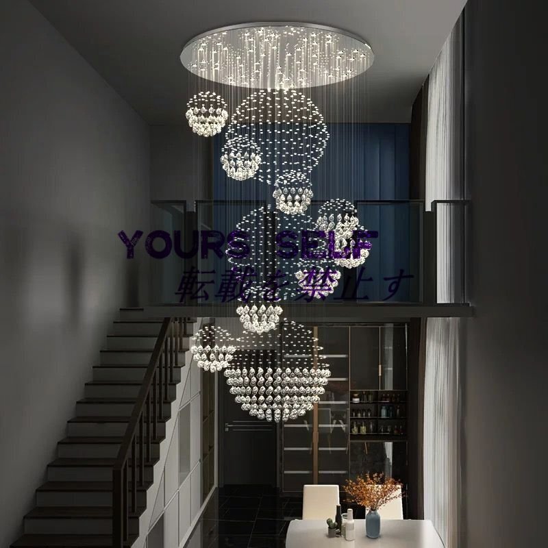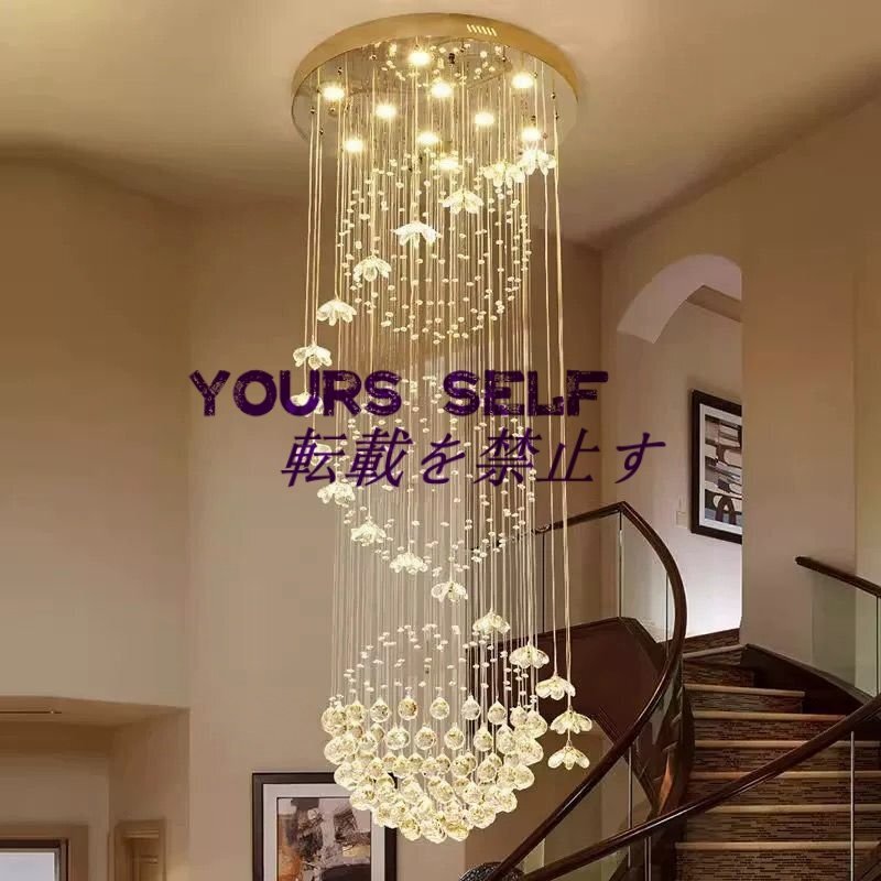 モダン大型11球スパイラルクリスタルシャンデリア 高級レインドロップ フラッシュマウント LED天井照明器具 玄関ロビー階段用