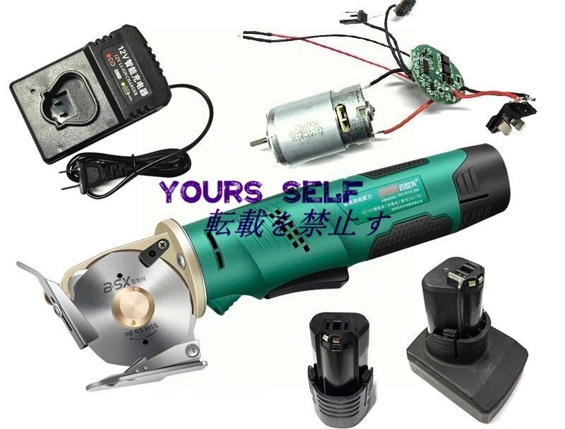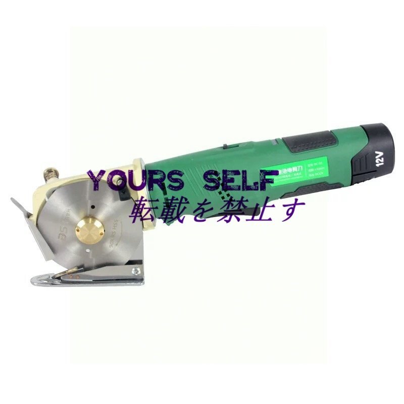 電池式 電動カッター コードレス 切断厚み33mm 軽量 170W 1400rpm 手持ち式裁断機 φ90替刃2枚付き 布/レザー/合皮/雑材/段ボールに適用