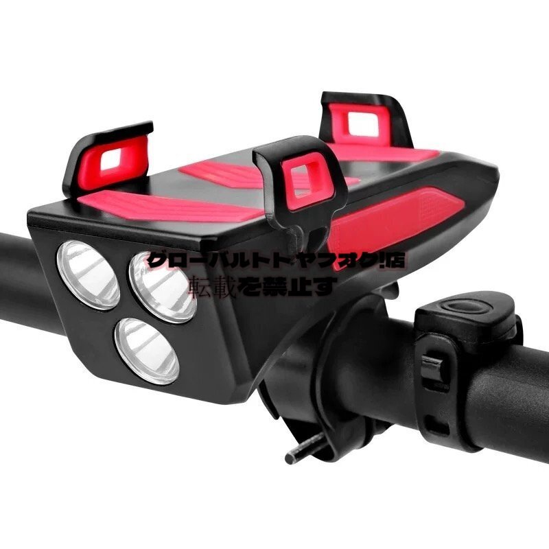 4 in 1自転車ライト懐中電灯バイクホーンアラームベル電話ホルダーパワーバンクバイクアクセサリーサイクリングフロントライトYS118