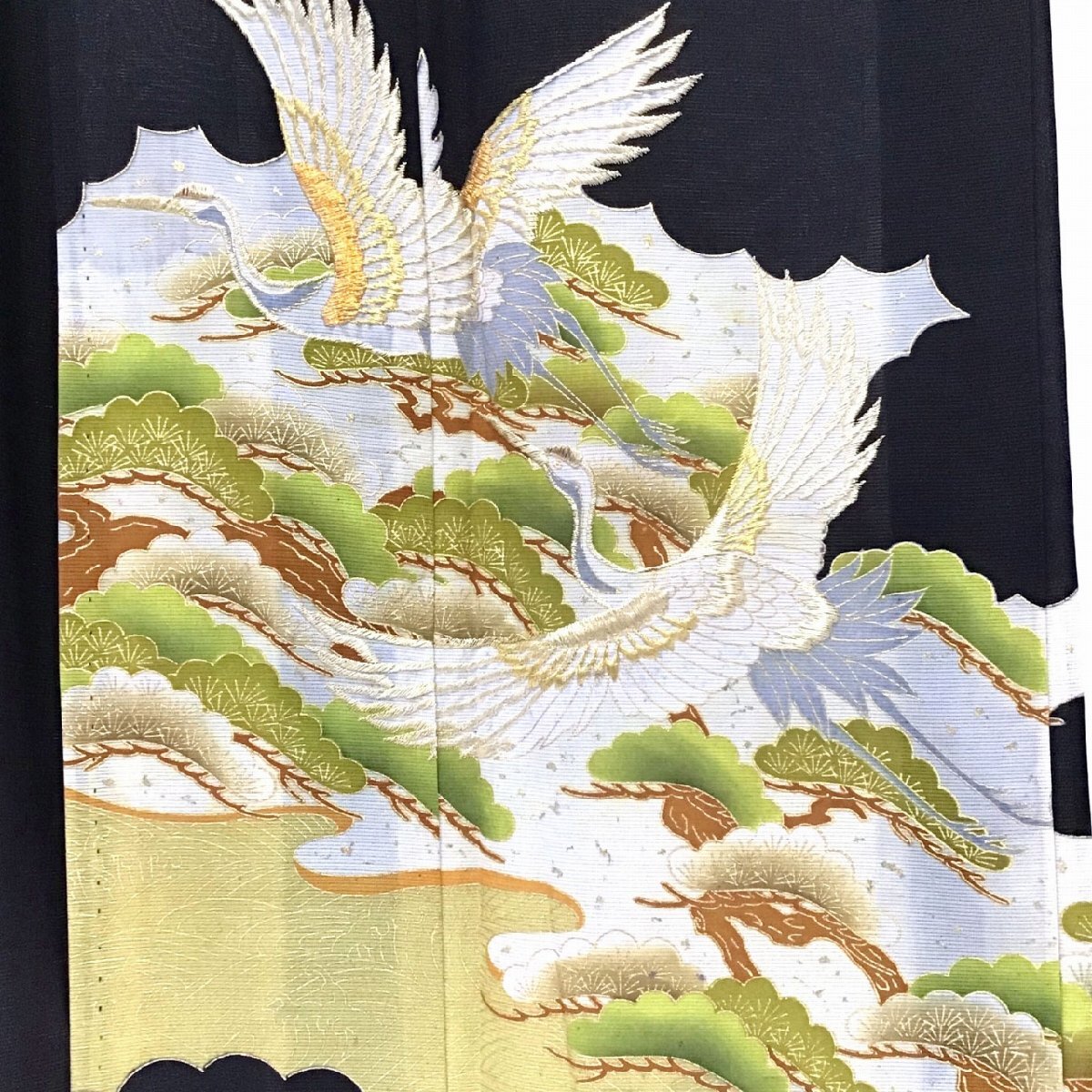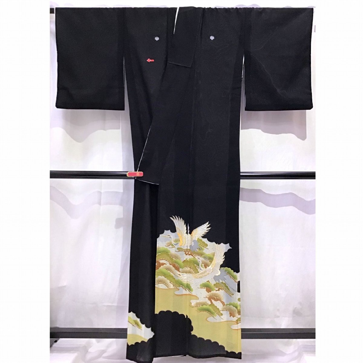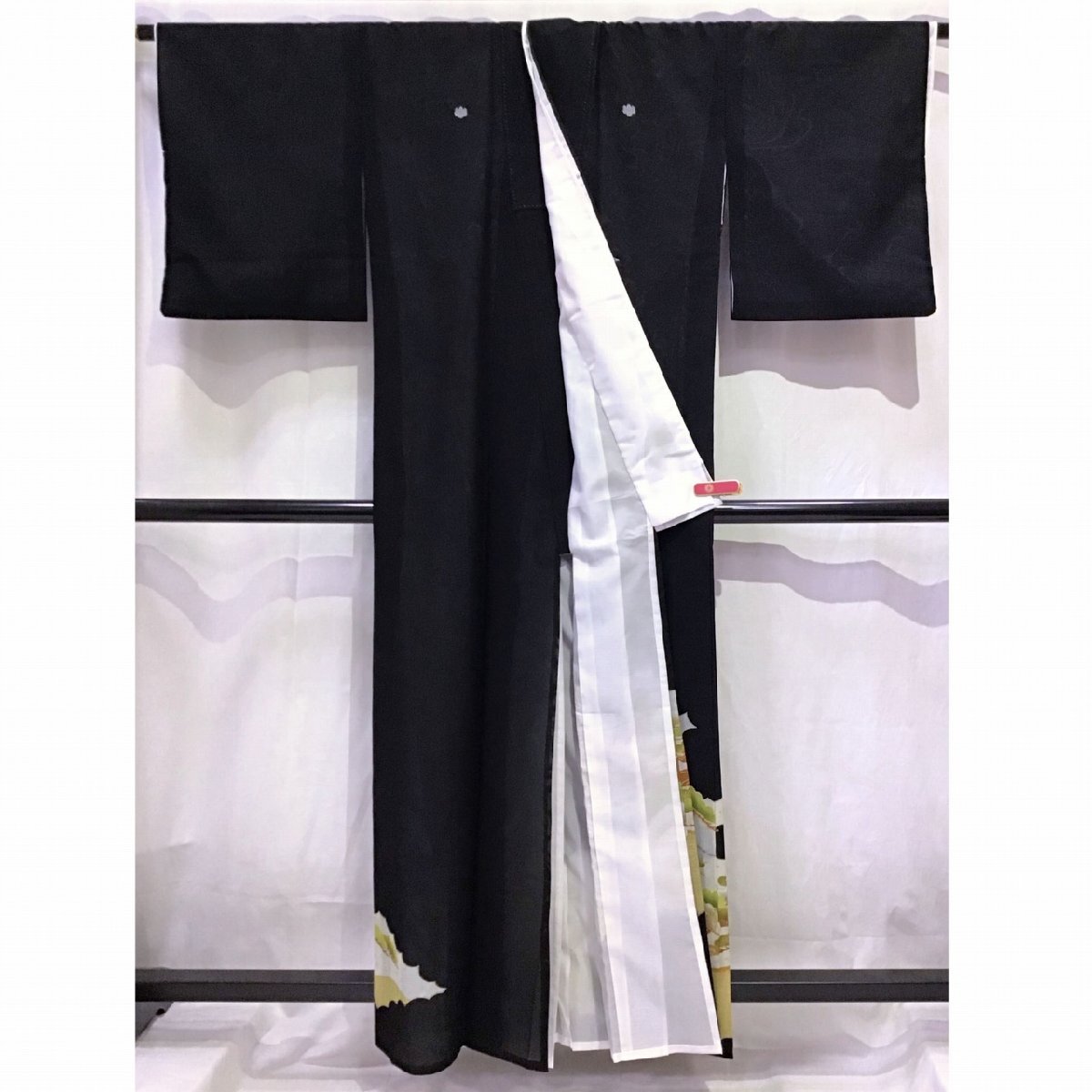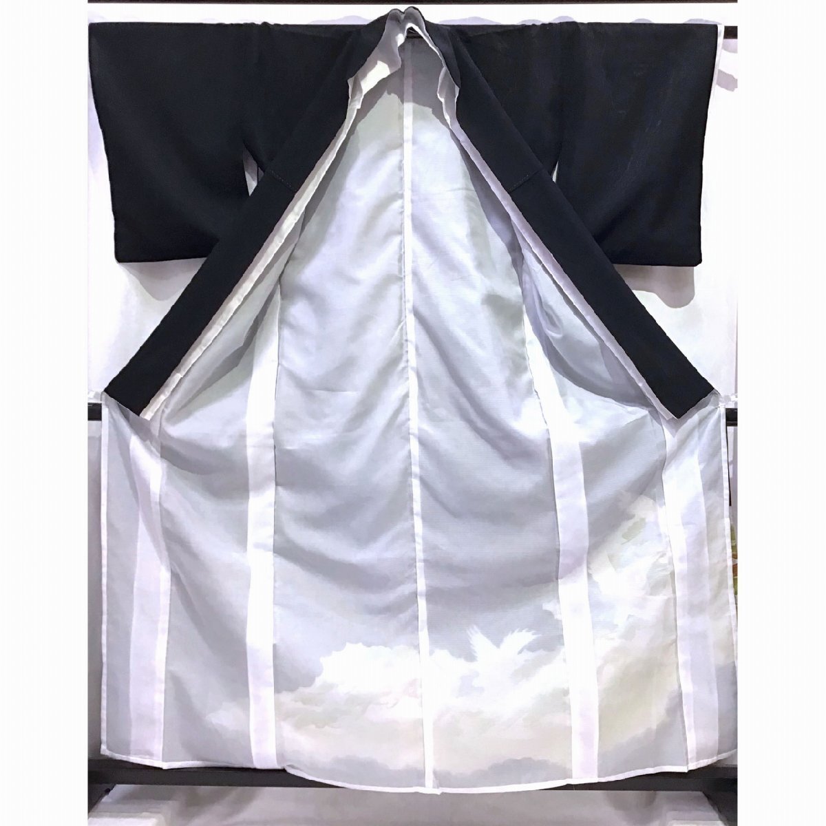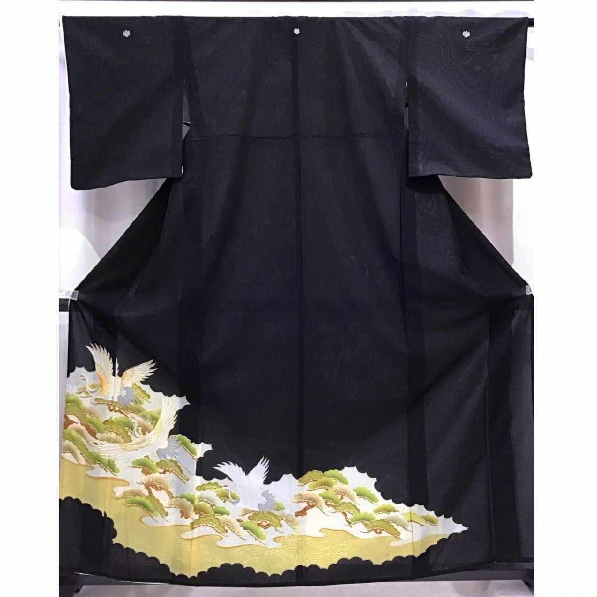 身丈:約159cm、袖丈:約48cm、裄丈:約62.5cm、後幅:約30cm、前幅:約24.5cm、五つ紋、状態ランク:C 若干のヨゴレあり