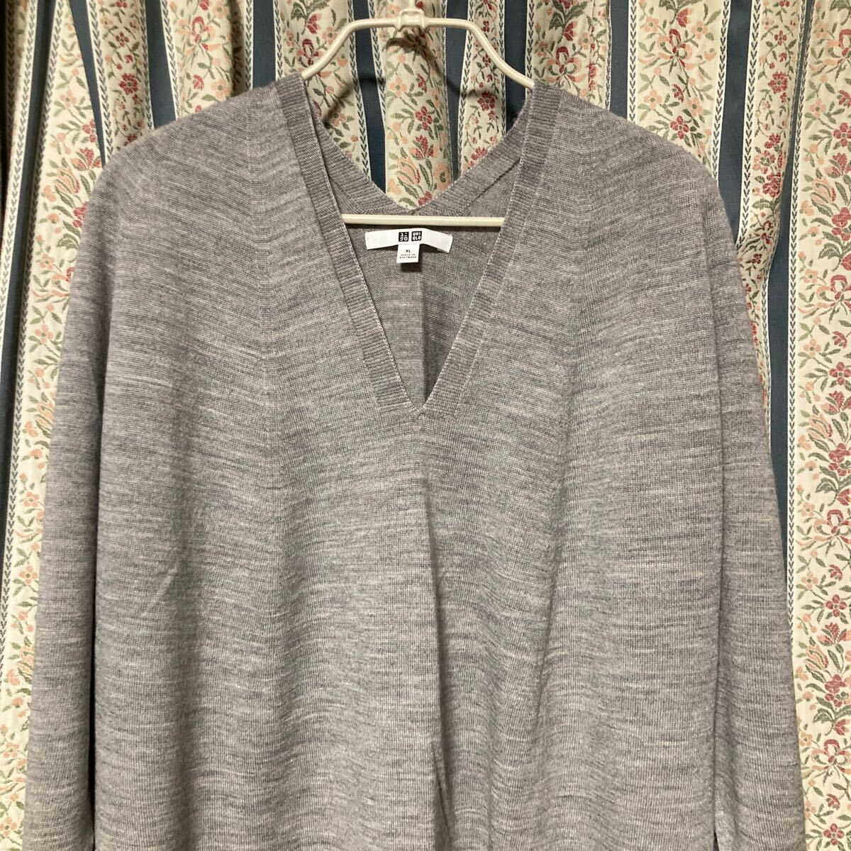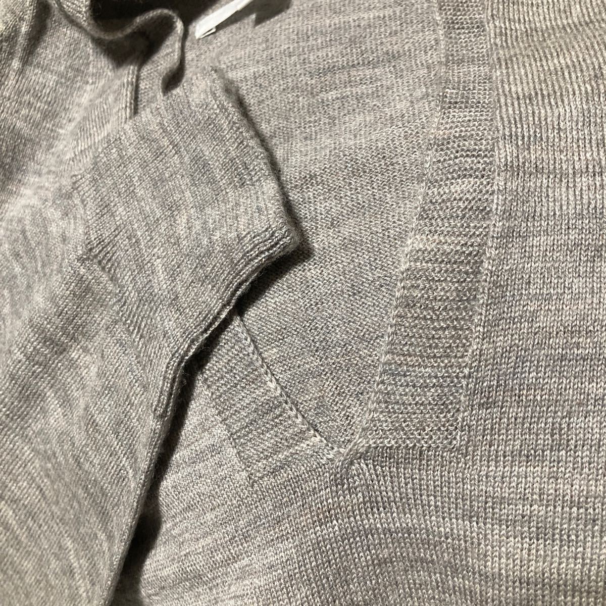 混じり気あるライトグレーのなめらかなメリノウール100のハイゲージニットです。