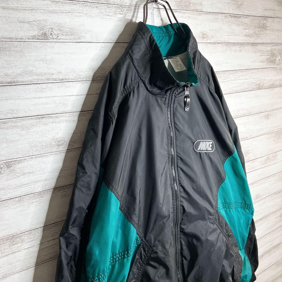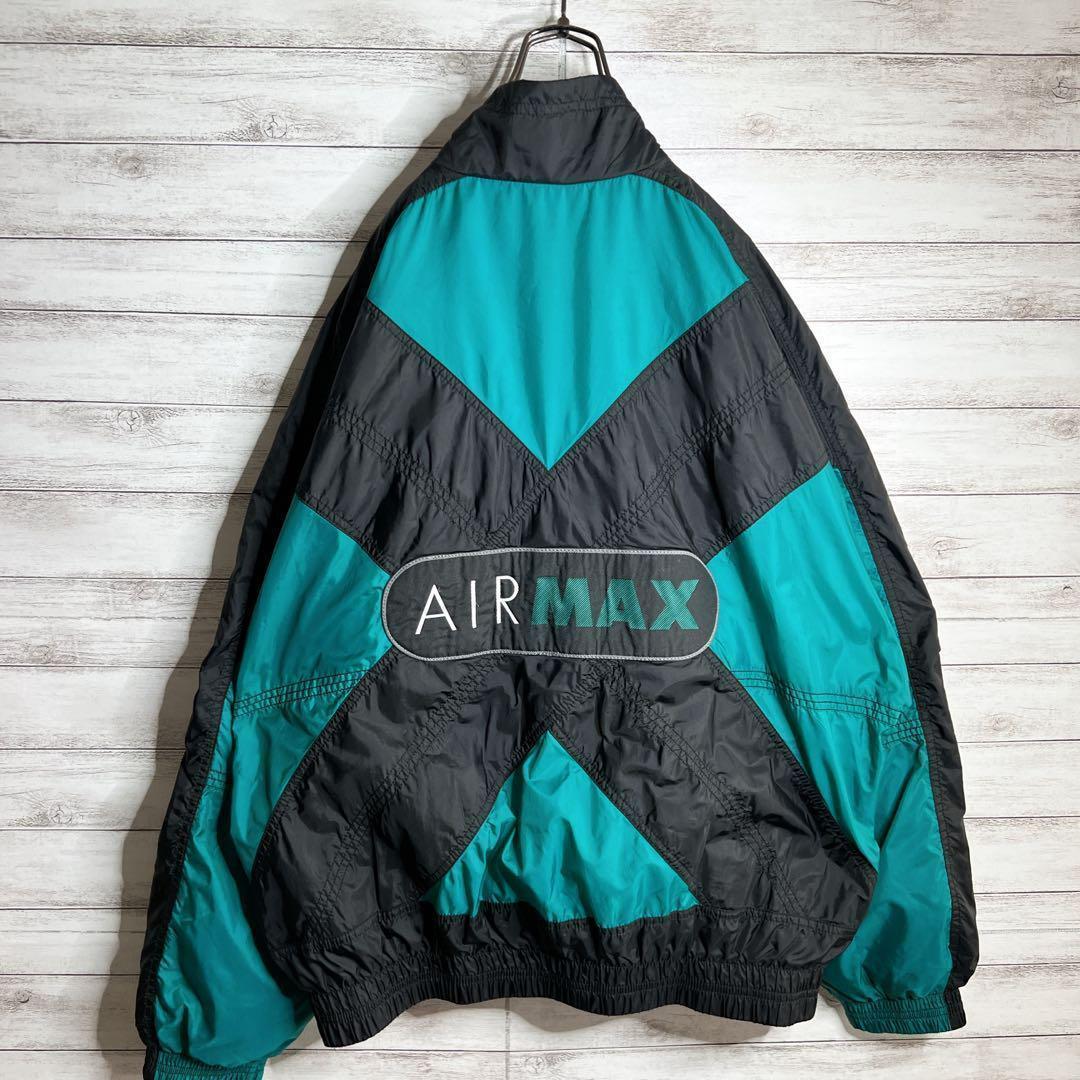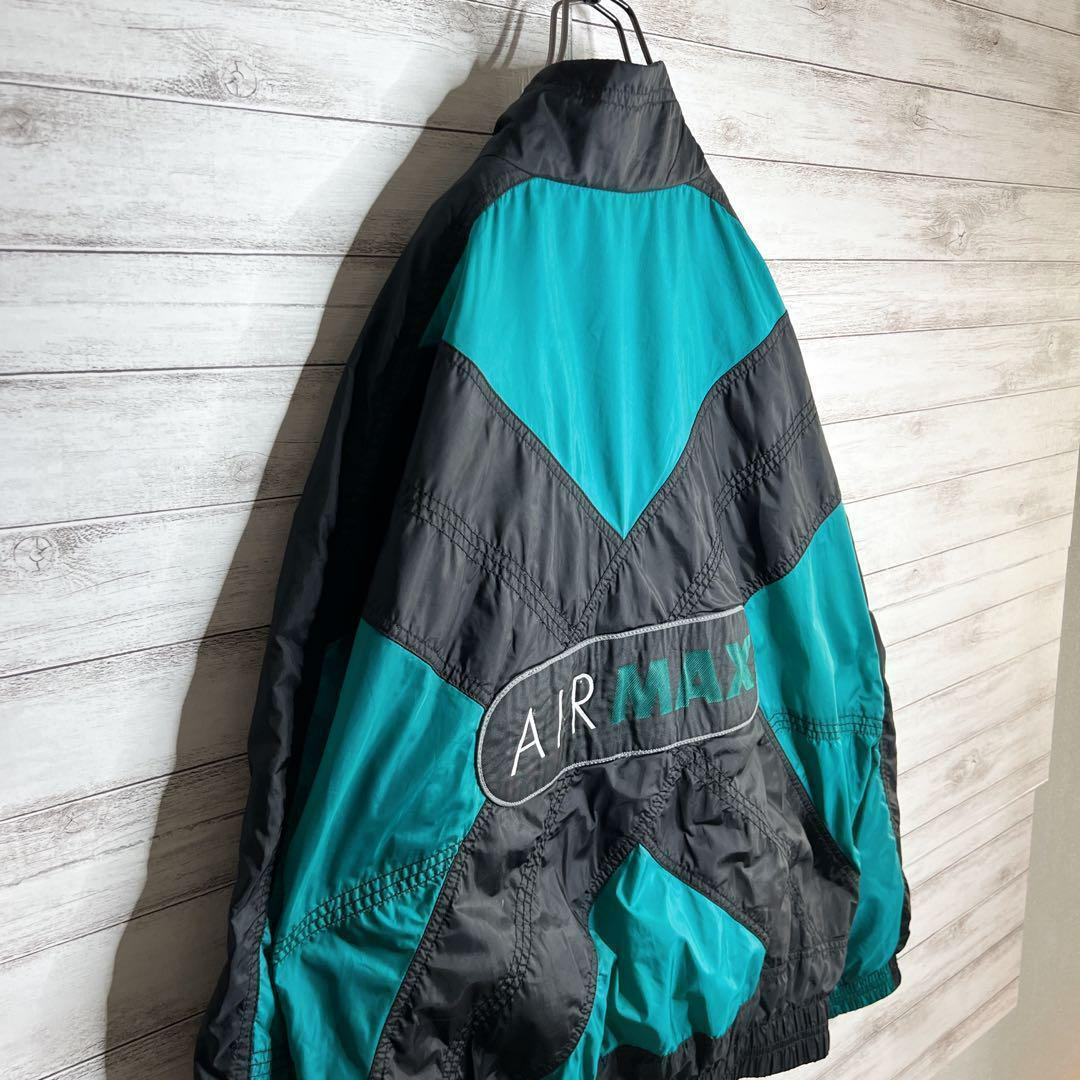 【入手困難!!】ナイキ 刺繍 バックロゴ AIR MAX ゆるだぼ 黒タグ ナイロンジャケット トレーナー 重ね着 VINTAGE 90’s 一点物 希少 銀タグ パーカー スウェット ブルゾン エアマックス