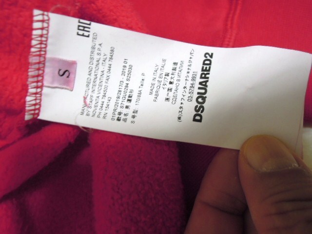 DSQUARED2●デイースクエアード●トレーナー●サイズS●綺麗な赤ピンク●ロゴダメージ加工プリント●美品