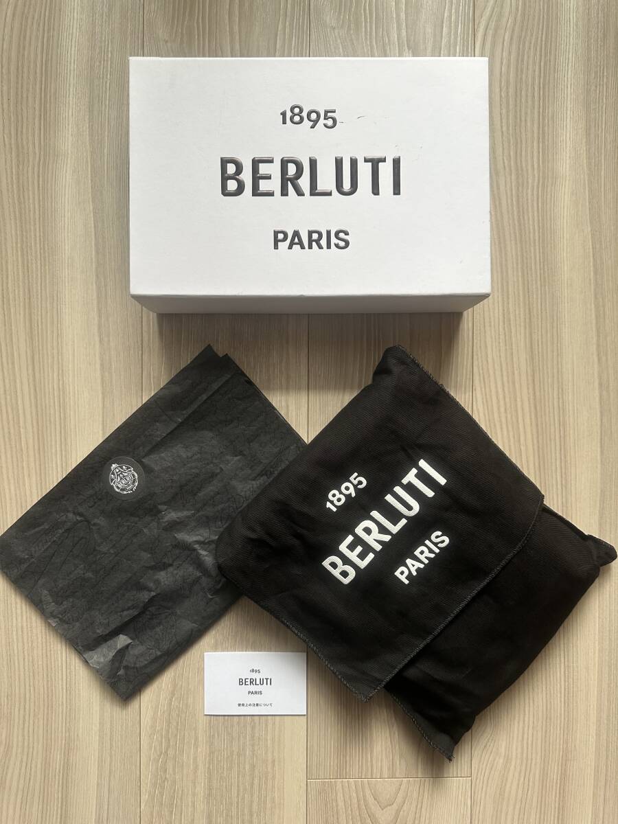 ベルルッティ純正の保存用布袋、化粧箱、ブランドカード、包み紙、ロゴシールを付属致します。
