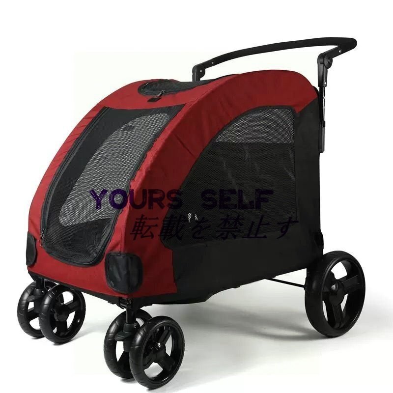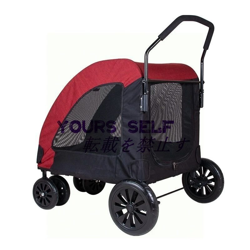 大型ペット用。ワンちゃんの介護に、体不自由のワンちゃんとの散歩やワンちゃんの通院などにもとても便利。ペットを乗せて一緒に楽しく散歩ができるペットカート、スチール製フレームと丈夫な生地で作られた一品です。