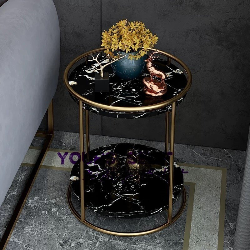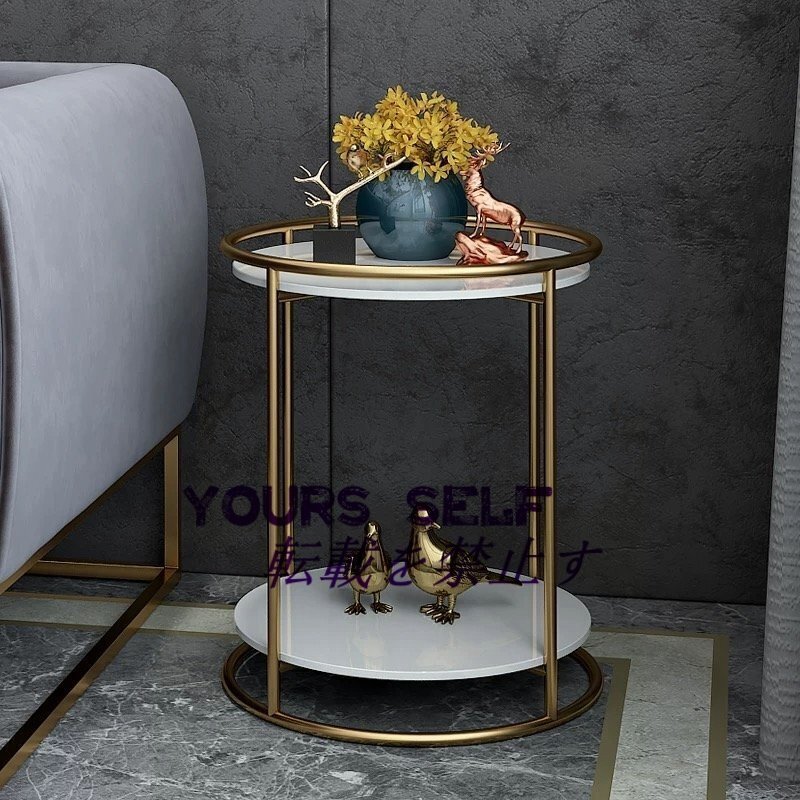 ソファサイドシェルフ ベッドサイドシェルフ リビング*寝室用テーブル 北欧風コーヒーテーブル 丸型テーブル 大理石製