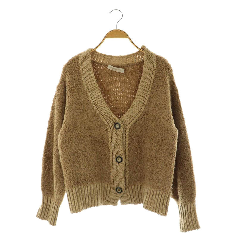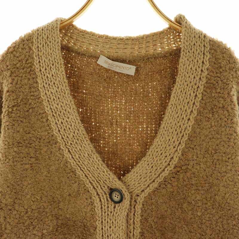 リナシメント RINASCIMENTO カーディガン プードルニット 長袖 Vネック ボリュームスリーブ イタリア製 S/M 茶 ブラウン