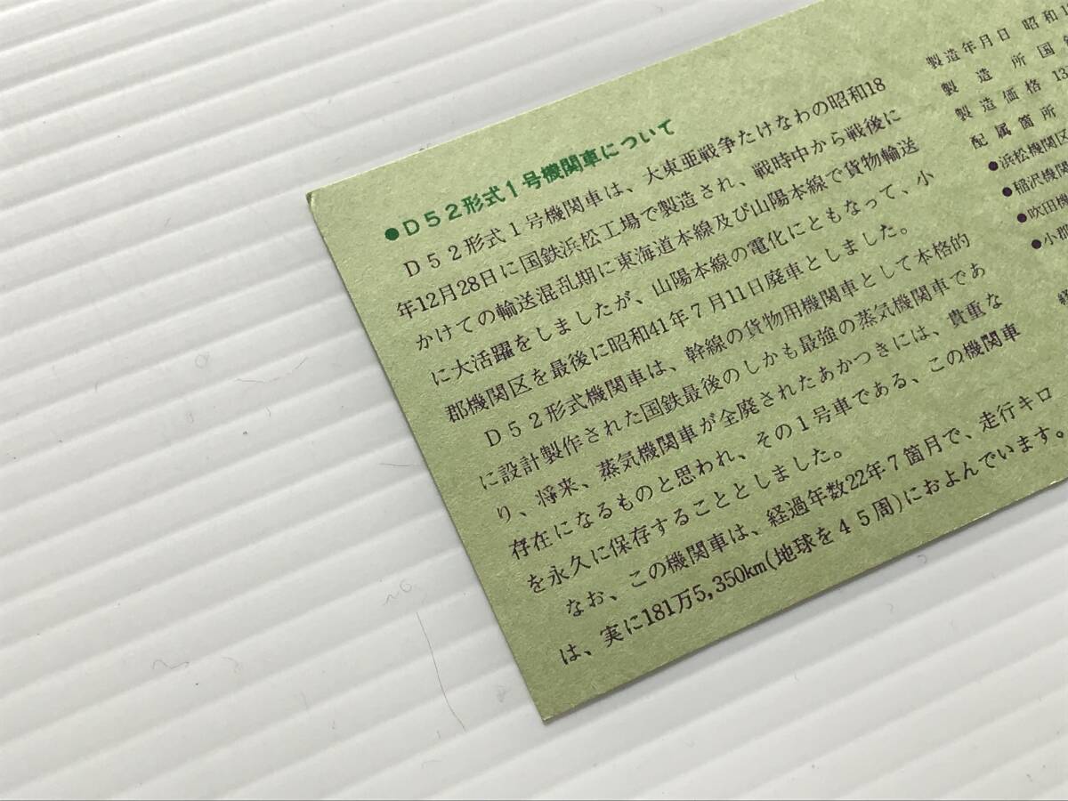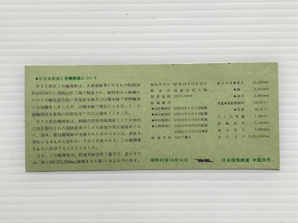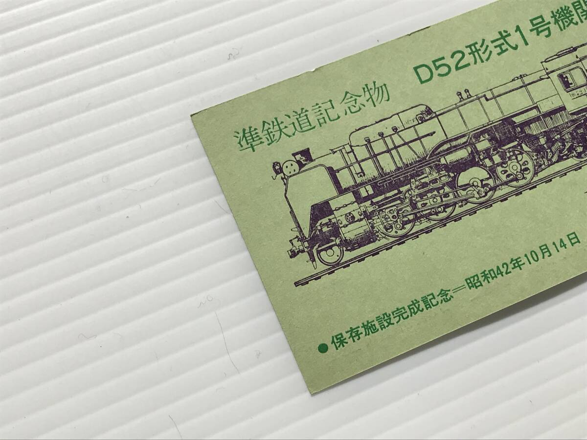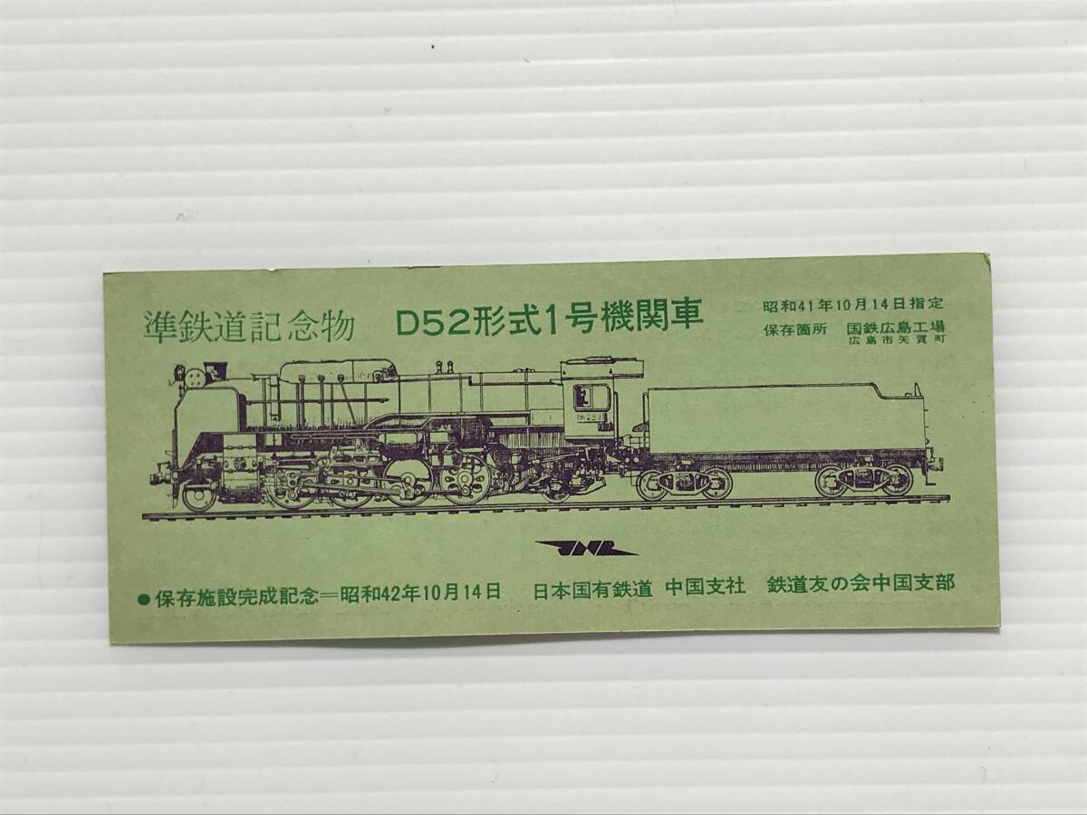 昔の切符 記念券 準鉄道記念物 D52形式1号機関車 保存施設完成記念 昭和42年10月14日 日本国有鉄道  HF7078   くるり岸田繁