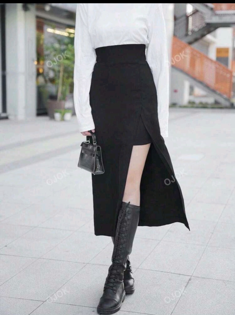 正面意外はウエストゴムですが、タイトスカートなためかなり細身でした。