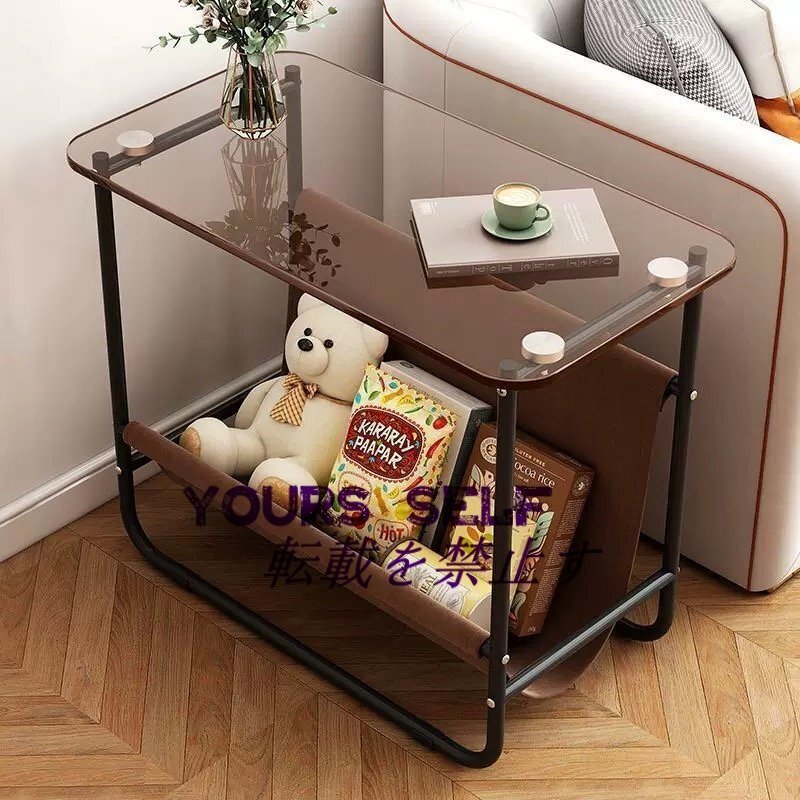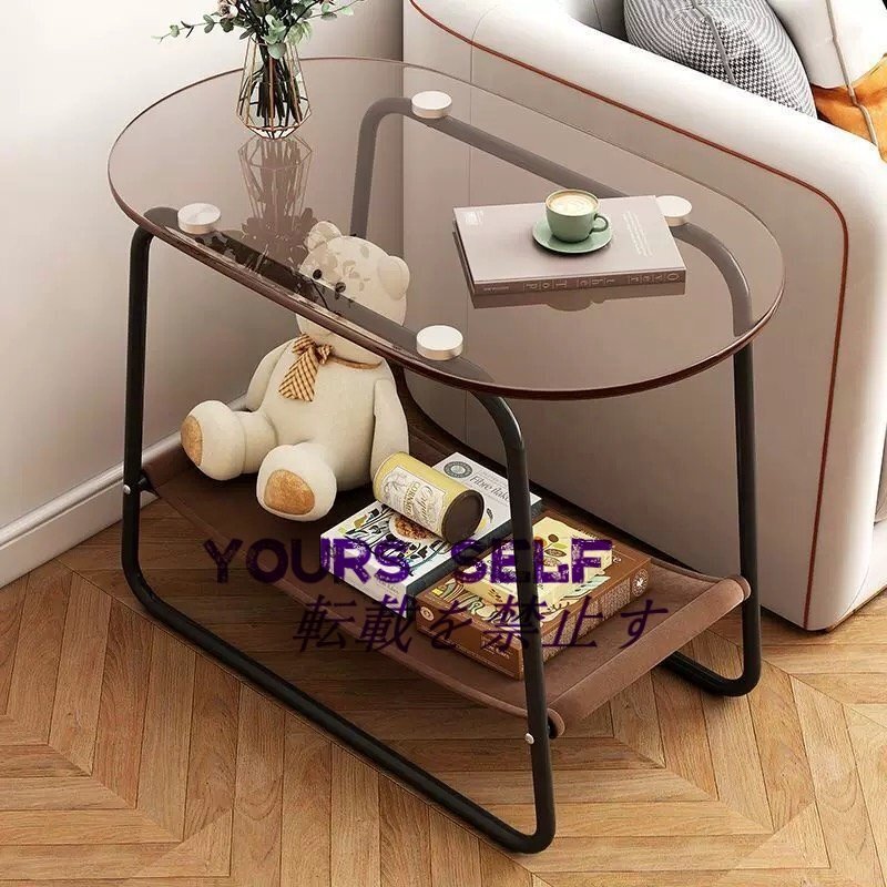 コーヒーテーブル リビングテーブル 二層収納スペース キャスター付き テーブルトップは強化ガラス製安定したスタンド65*30*53cm