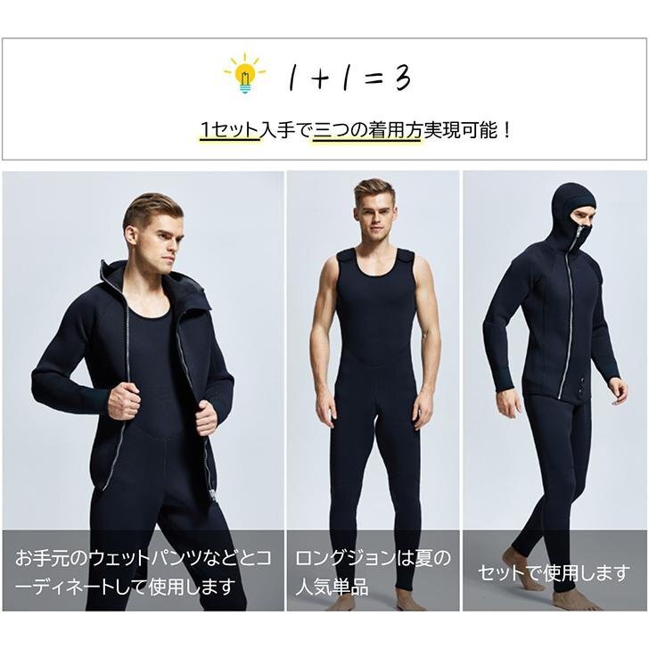 ウェットスーツ メンズ 5mmスピアフィッシング フード一体式2ピース表ジャージ裏起毛 ロングジョン フロントジップ ビーバーテール付き XL