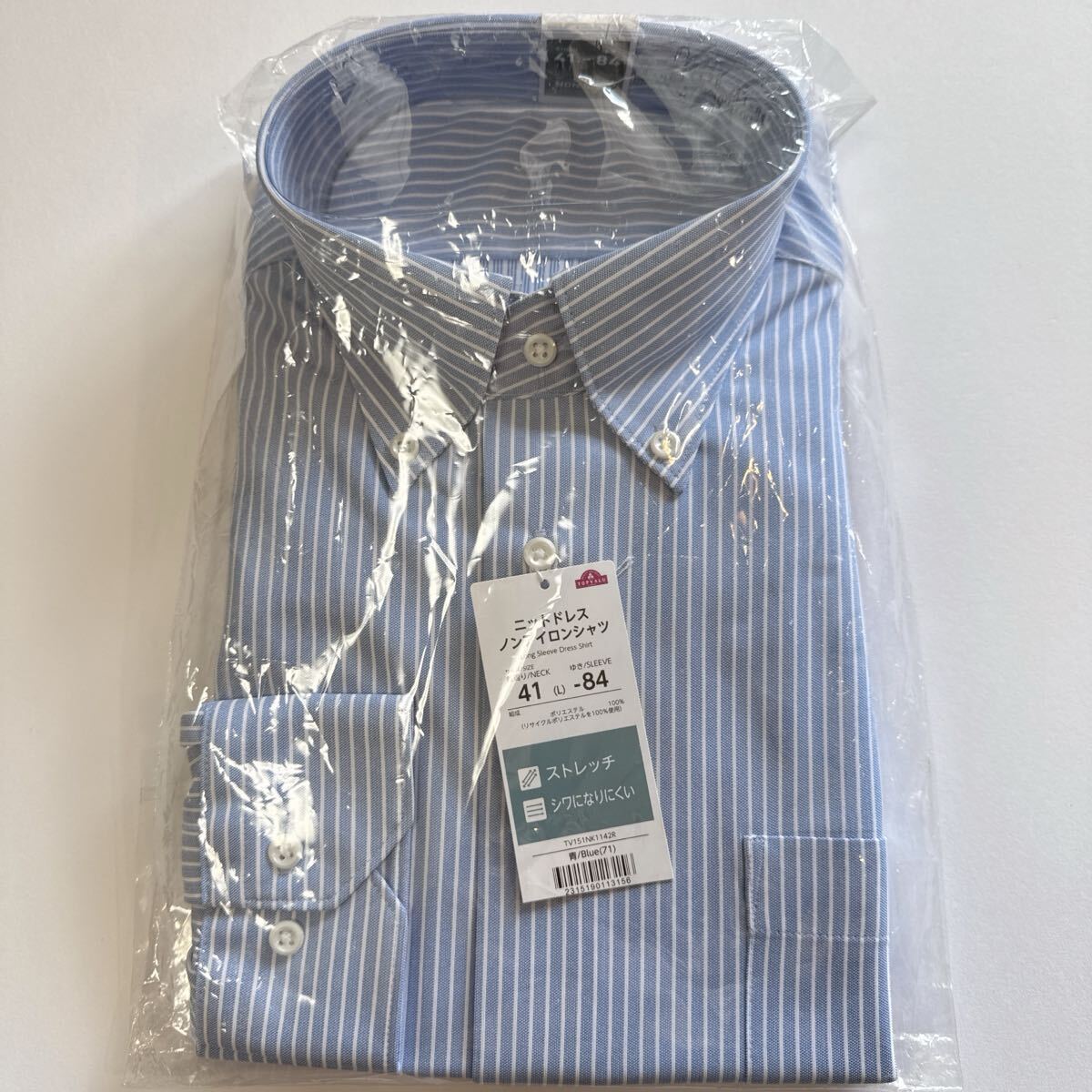 ★ 未使用 Lサイズ ★ 41-84 ニットドレス ノンアイロン ボタンダウン ドレスシャツ Y ワイシャツ ★ 形態安定 全国一律送料 断捨離 ★