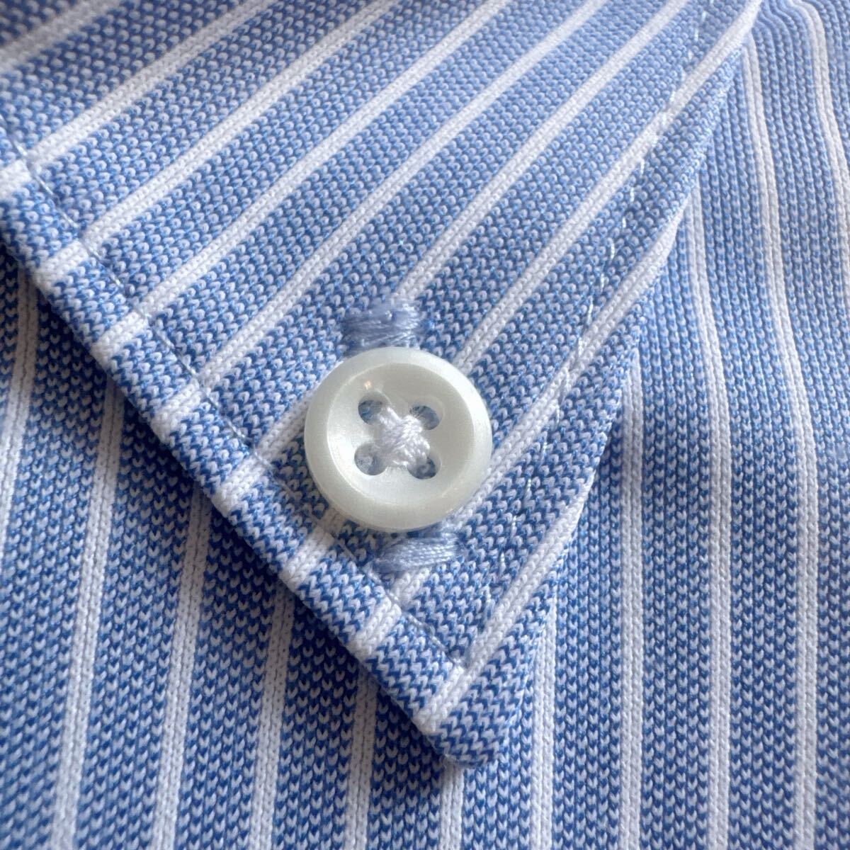 ブルーストライプのノンアイロン ニットデザインでシンプルなコンサバ感がGOOD!
