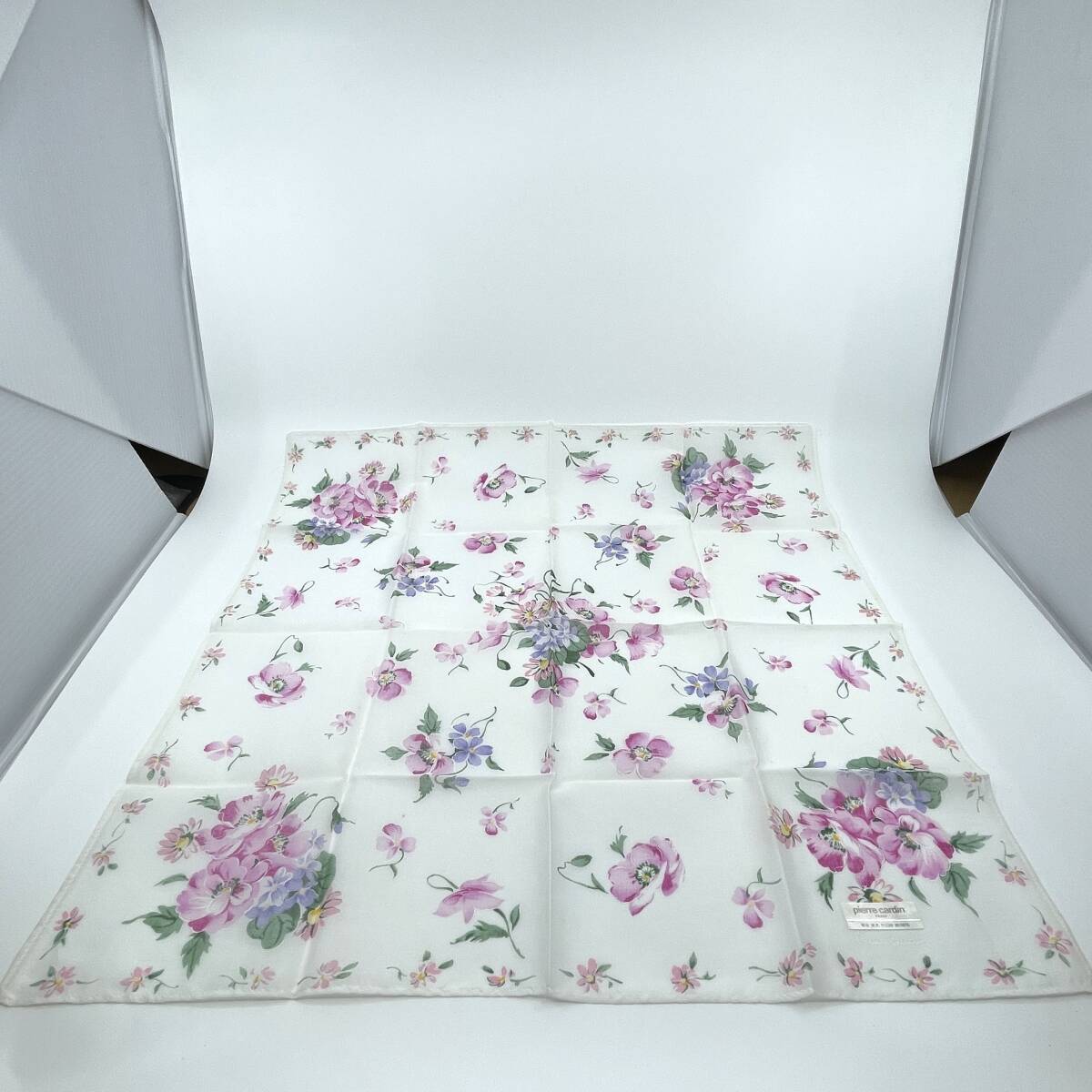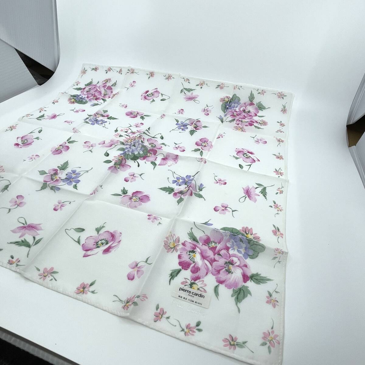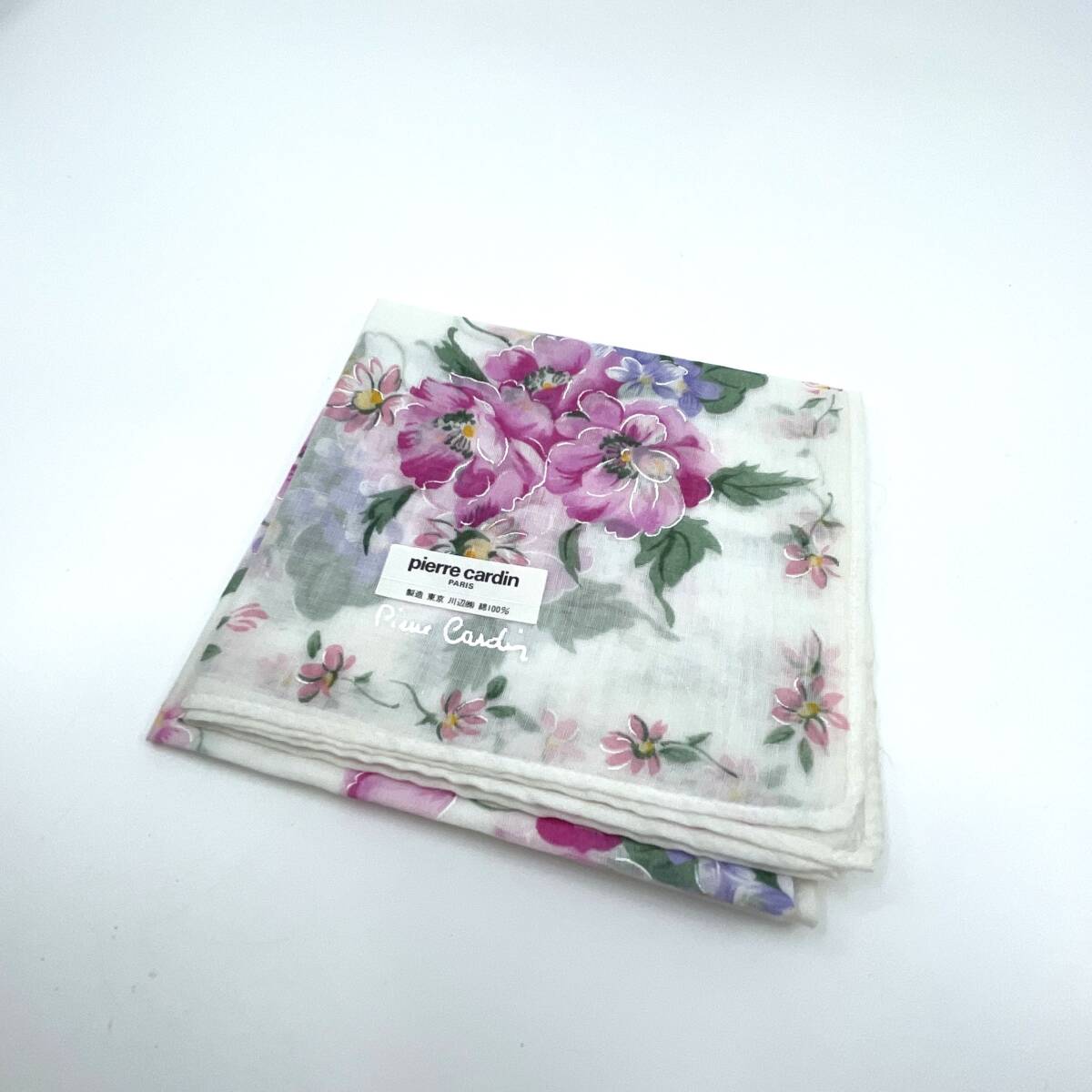 【シール付き未使用品】pierre cardin ピエールカルダン ハンカチ バンダナ 花柄 フラワー ピンク×パープル×ホワイト系 綿 コットン100%