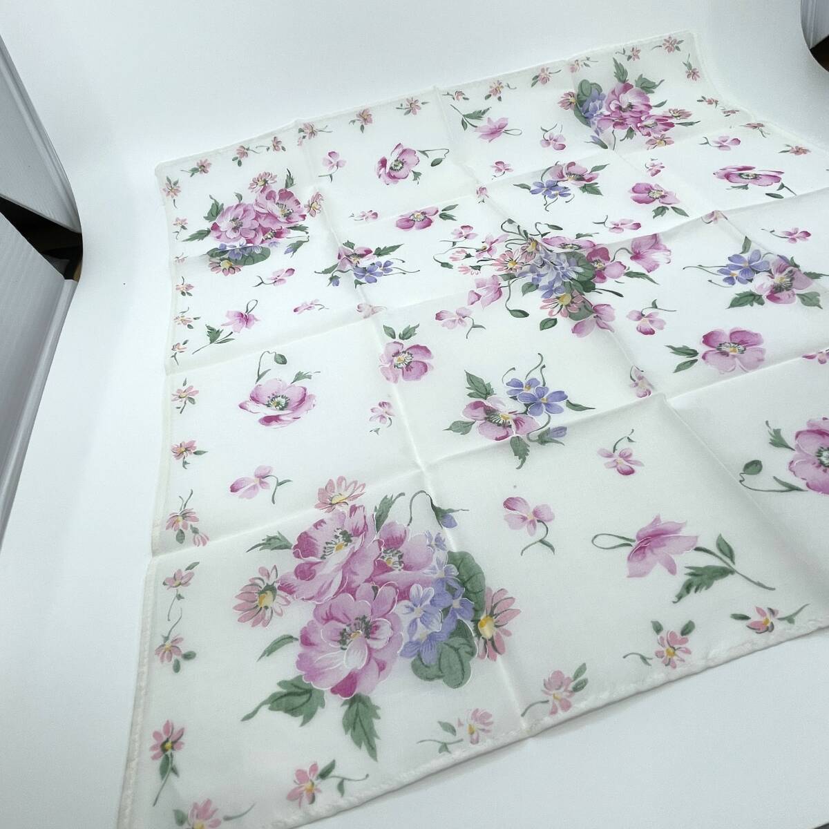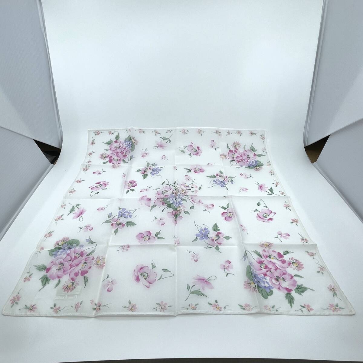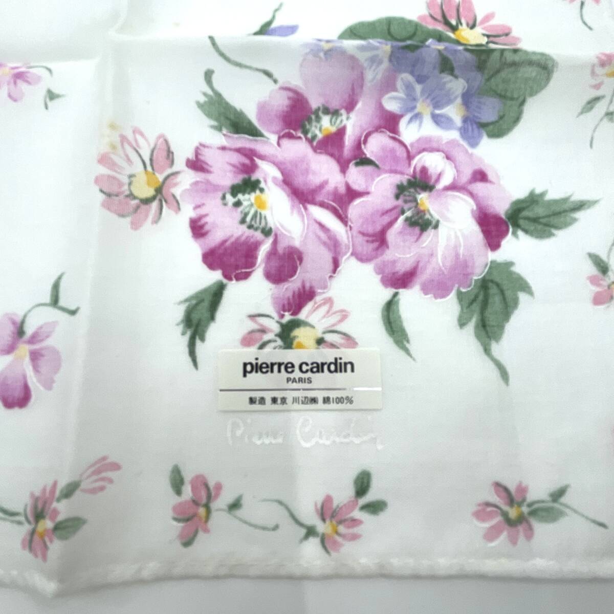 【シール付き未使用品】pierre cardin ピエールカルダン ハンカチ バンダナ 花柄 フラワー ピンク×パープル×ホワイト系 綿 コットン100%
