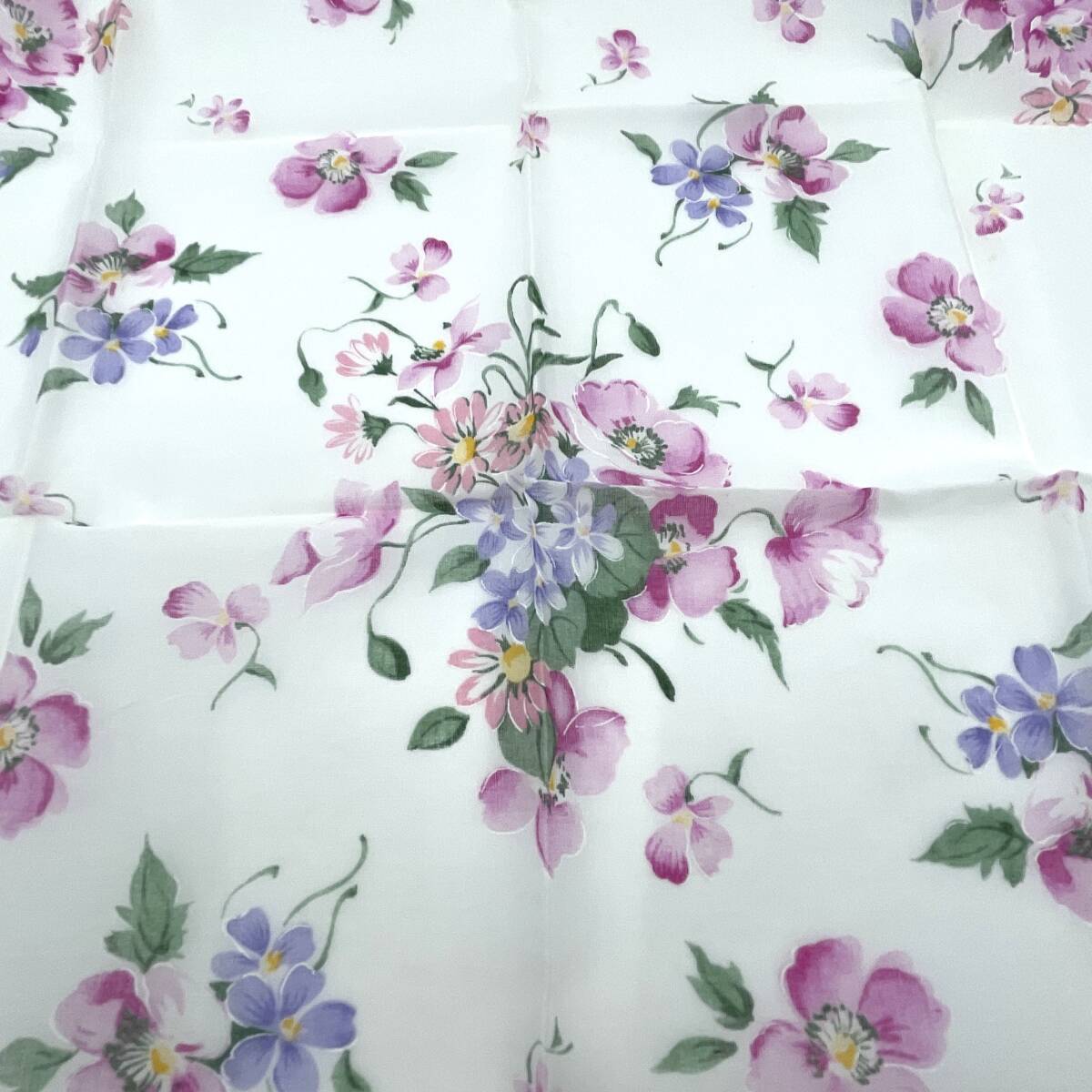 ハンカチ バンダナ 花柄 フラワー ピンク×パープル×ホワイト系 綿 コットン100%