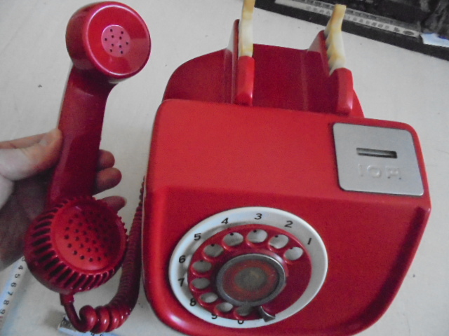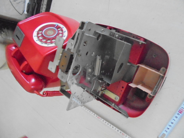 Aka7150◆隼◆昭和レトロ ダイヤル式電話機 赤電話 公衆電話 旧家蔵出骨董初だし