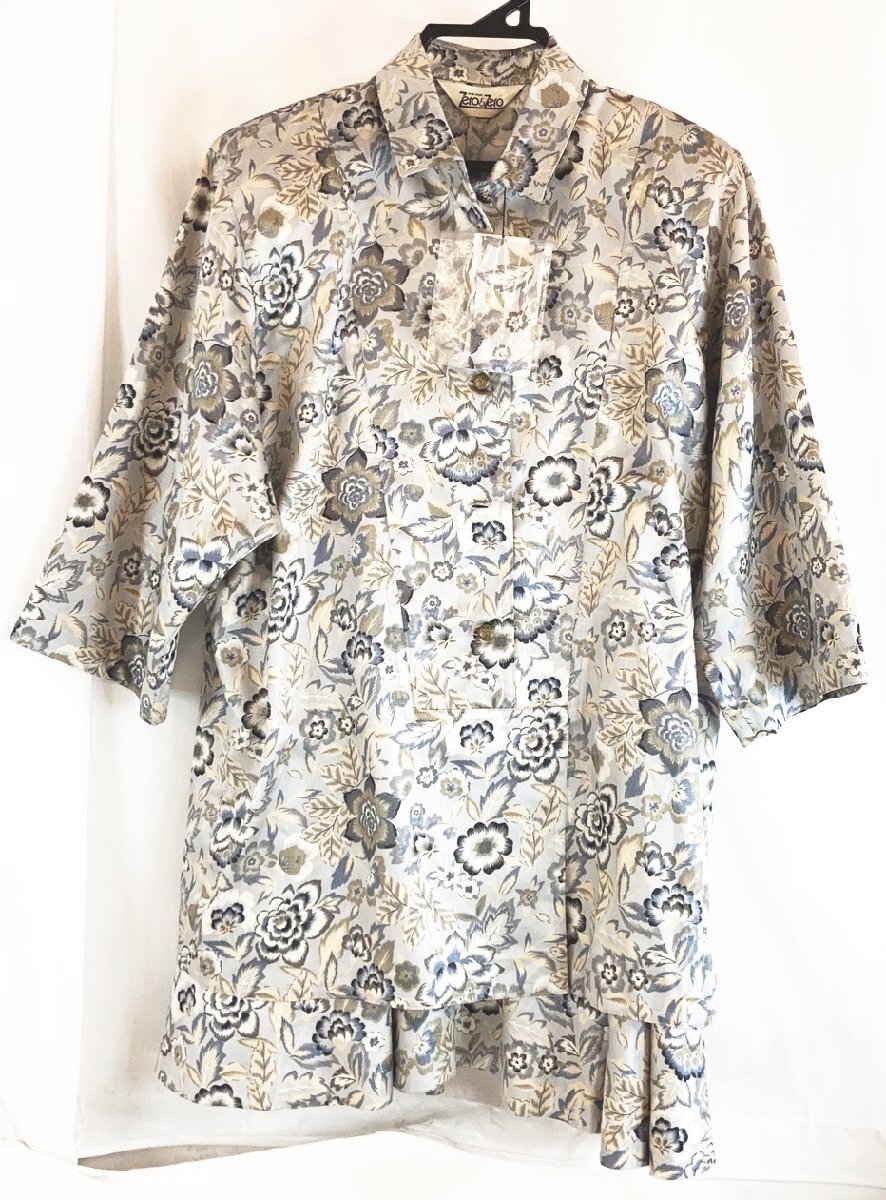 ゼロ & ゼロ グレー系 総柄 七分袖 ブラウス ミモレ丈スカート 9AB3 タグ付未使用品 SE-2