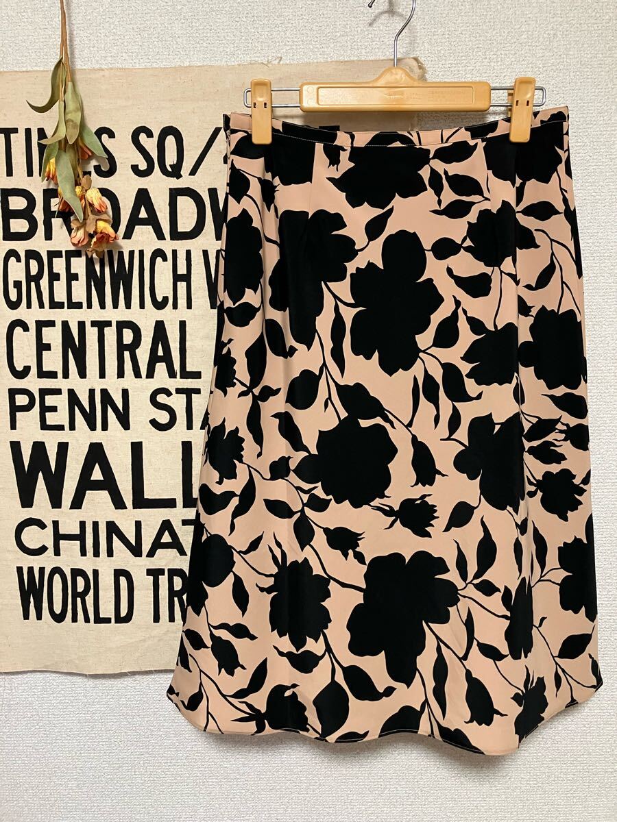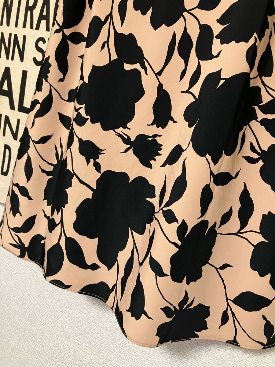 ベージュ地にブラックの花がプリントされており、花の影のようなお洒落なプリントです。