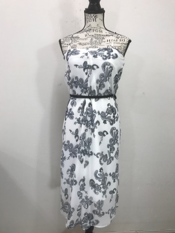 3514 レディース 【 ICB オンワード樫山 】キャミワンピース ひもベルト付き  サイズ:4  色:ホワイト柄入り