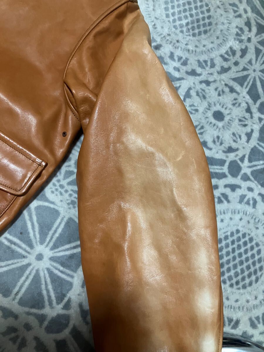 コンディション レザースレ 所々色落ちあり 左肩から腕色落ち目立つ状態