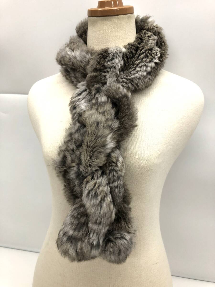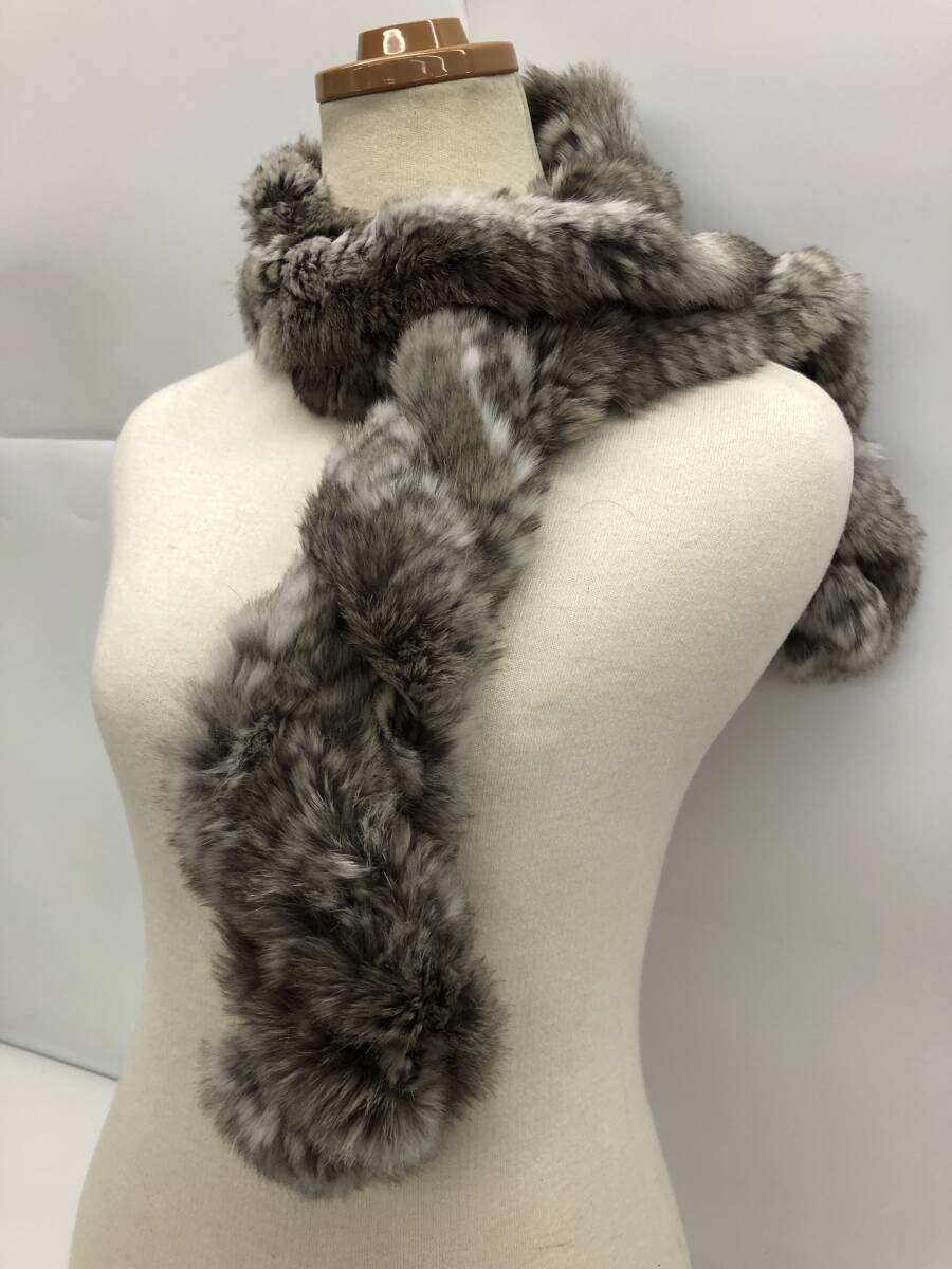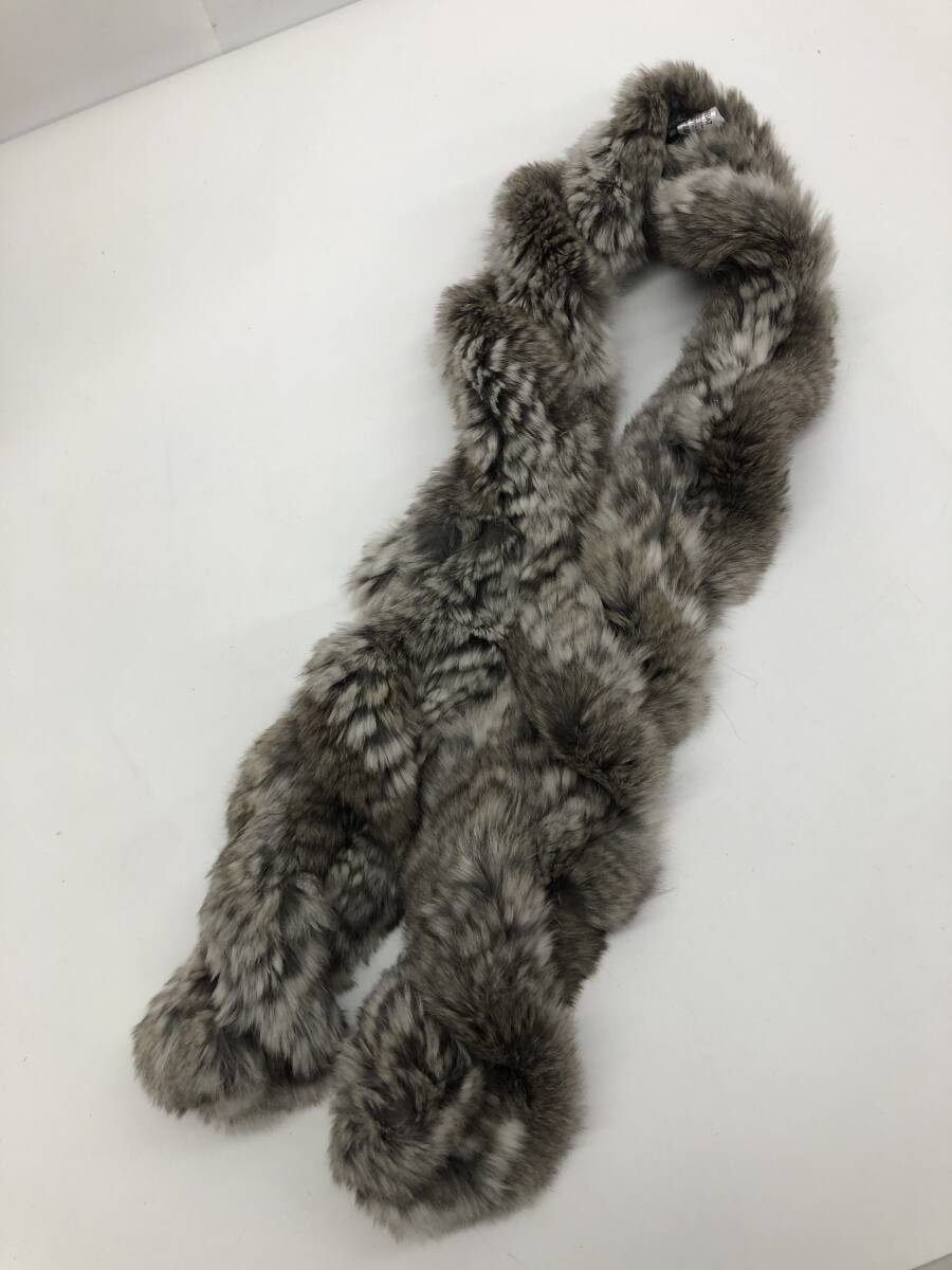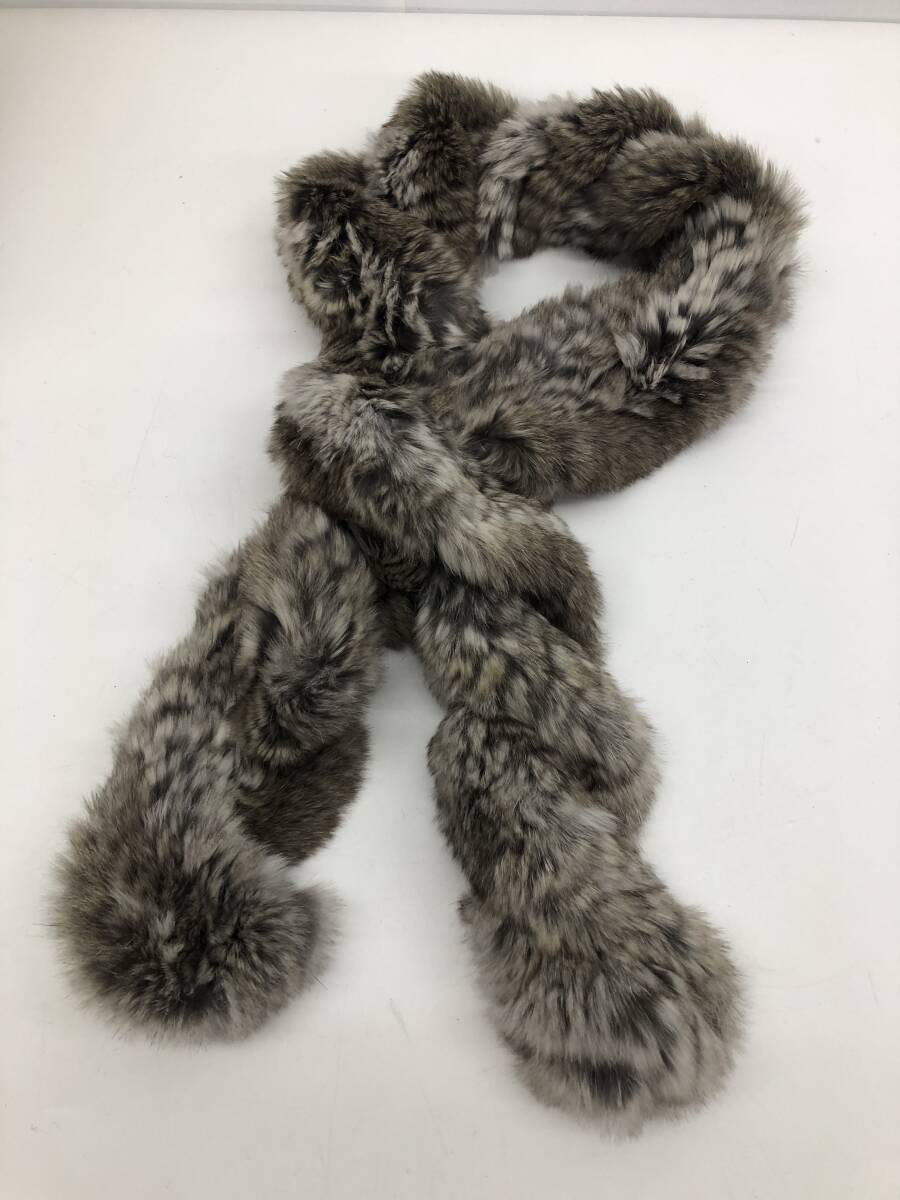 MOONBAT ムーンバット ラビット ファー ティペット マフラー 毛皮 襟巻 グレー系 全長:約100cm |