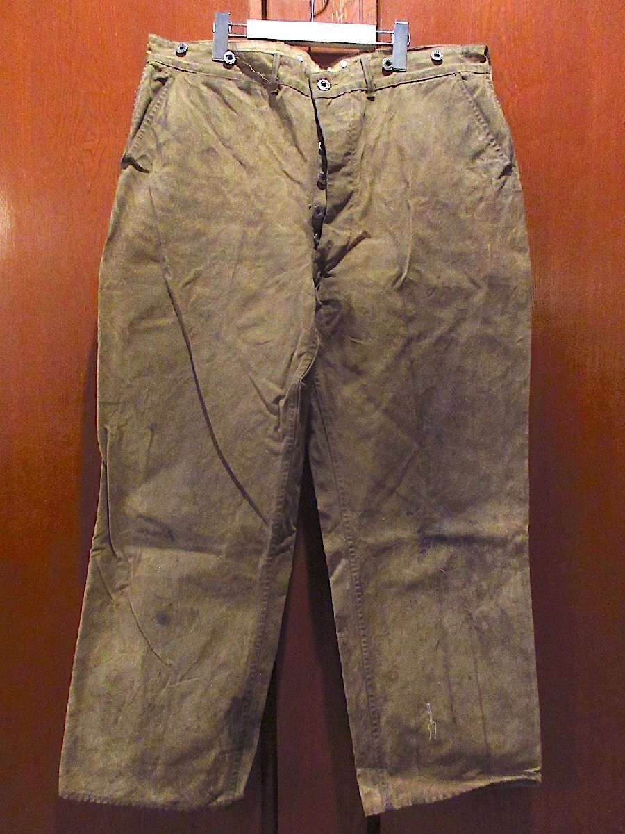 1940's FILSON サスペンダーボタン付き オイルドコットンパンツ 実寸W101cm