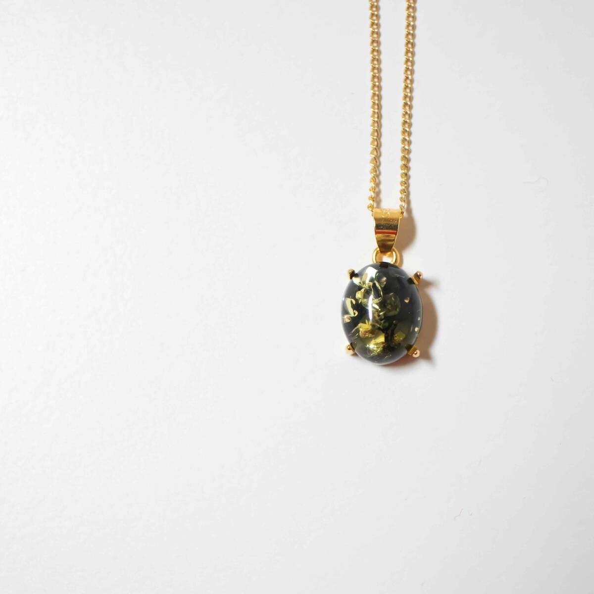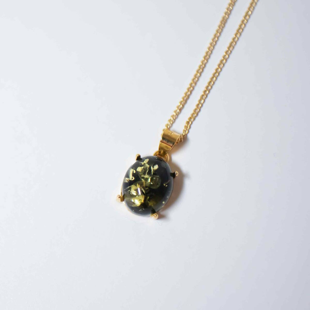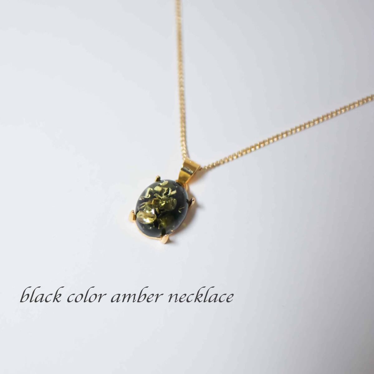 天然石 ブラックカラーアンバー ネックレス◆アジャスター付き◆ゴールド 琥珀