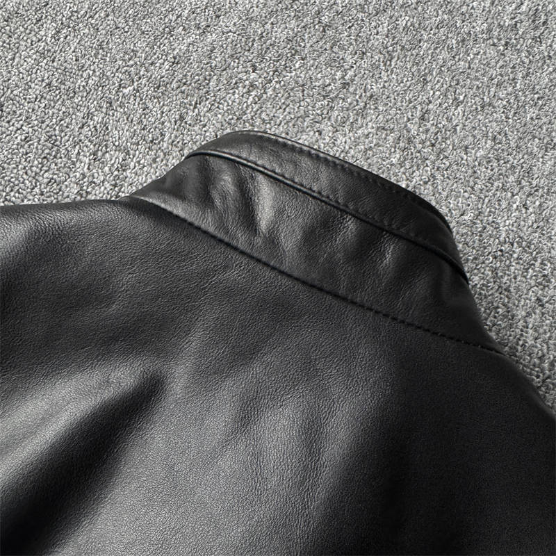 T9980-3XL/黒色 上品で落ち着いた! 新品 メンズ 中綿ジャケット イタリアレザー 羊革 本革 ビジネス カジュアル ライダース ラム ブルゾン