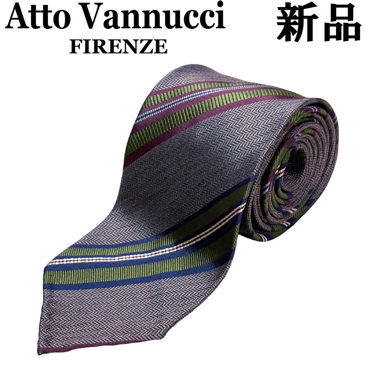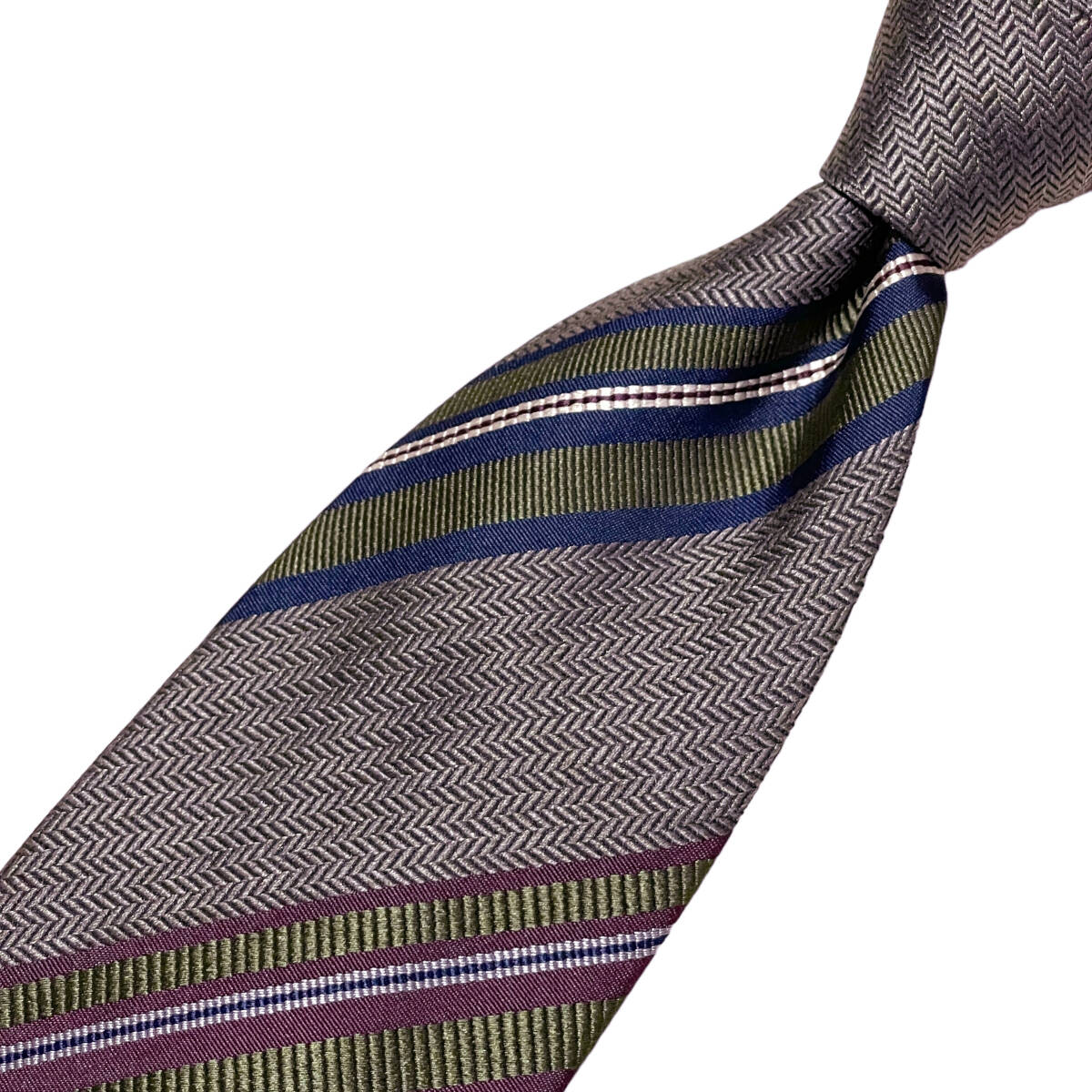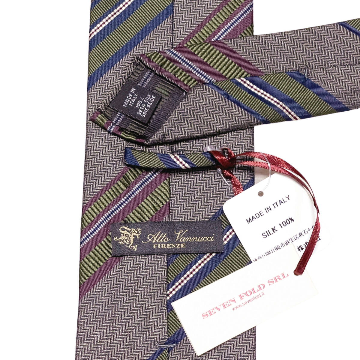 【新品】Atto Vannucci アット ヴァンヌッチ シルク ヘリンボーン レジメンタルストライプ ネクタイ グレー ネイビー オリーブ ワイン 5
