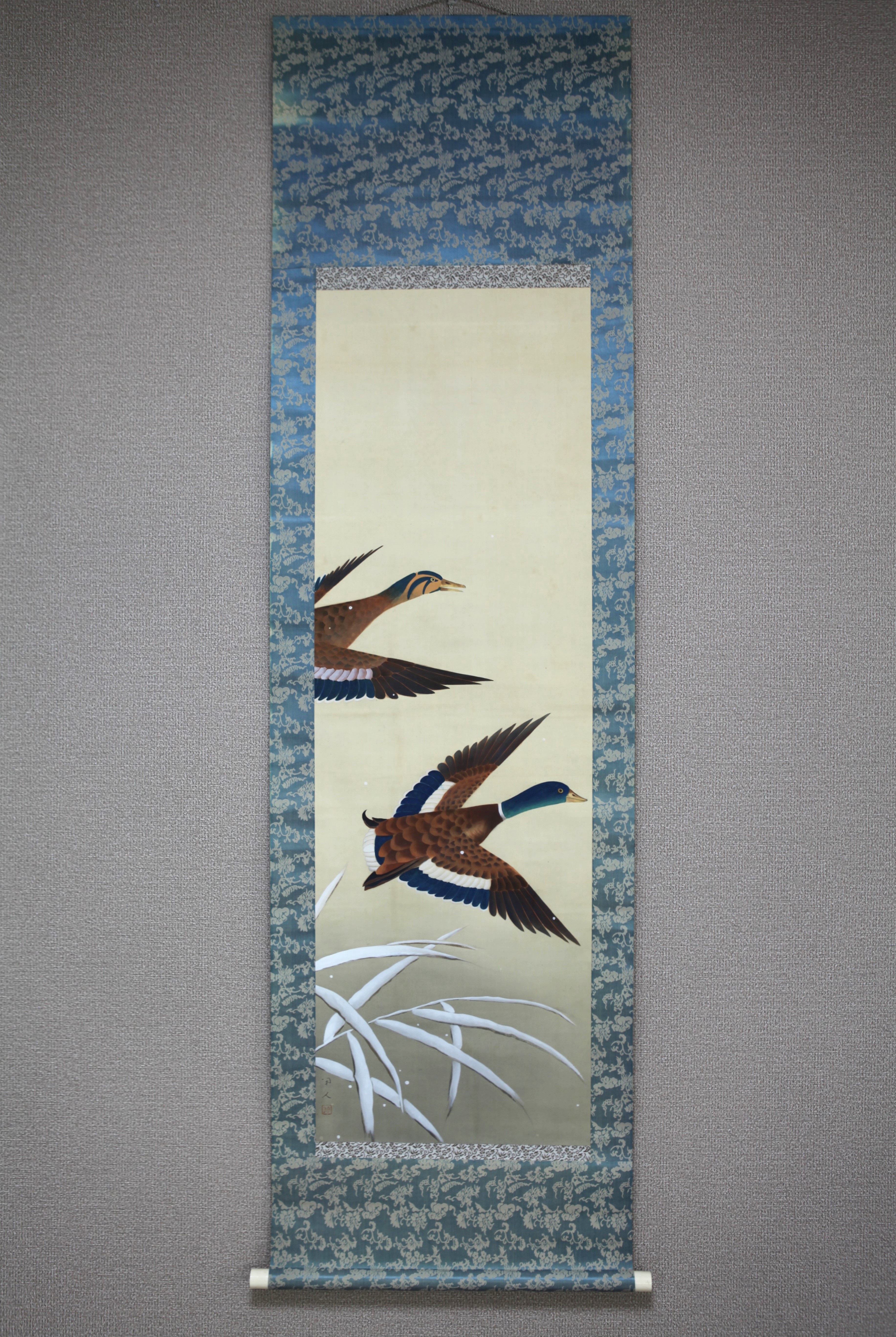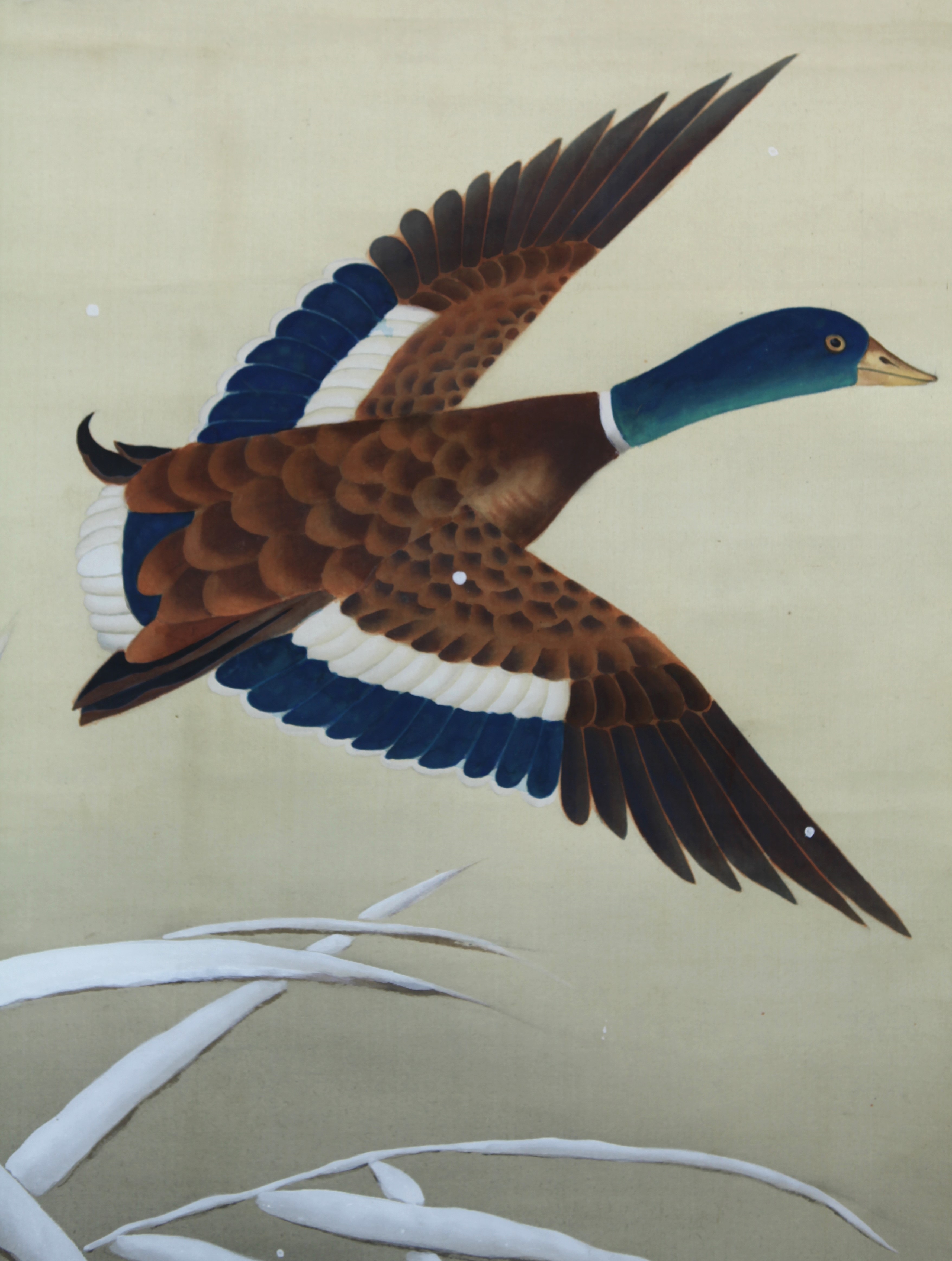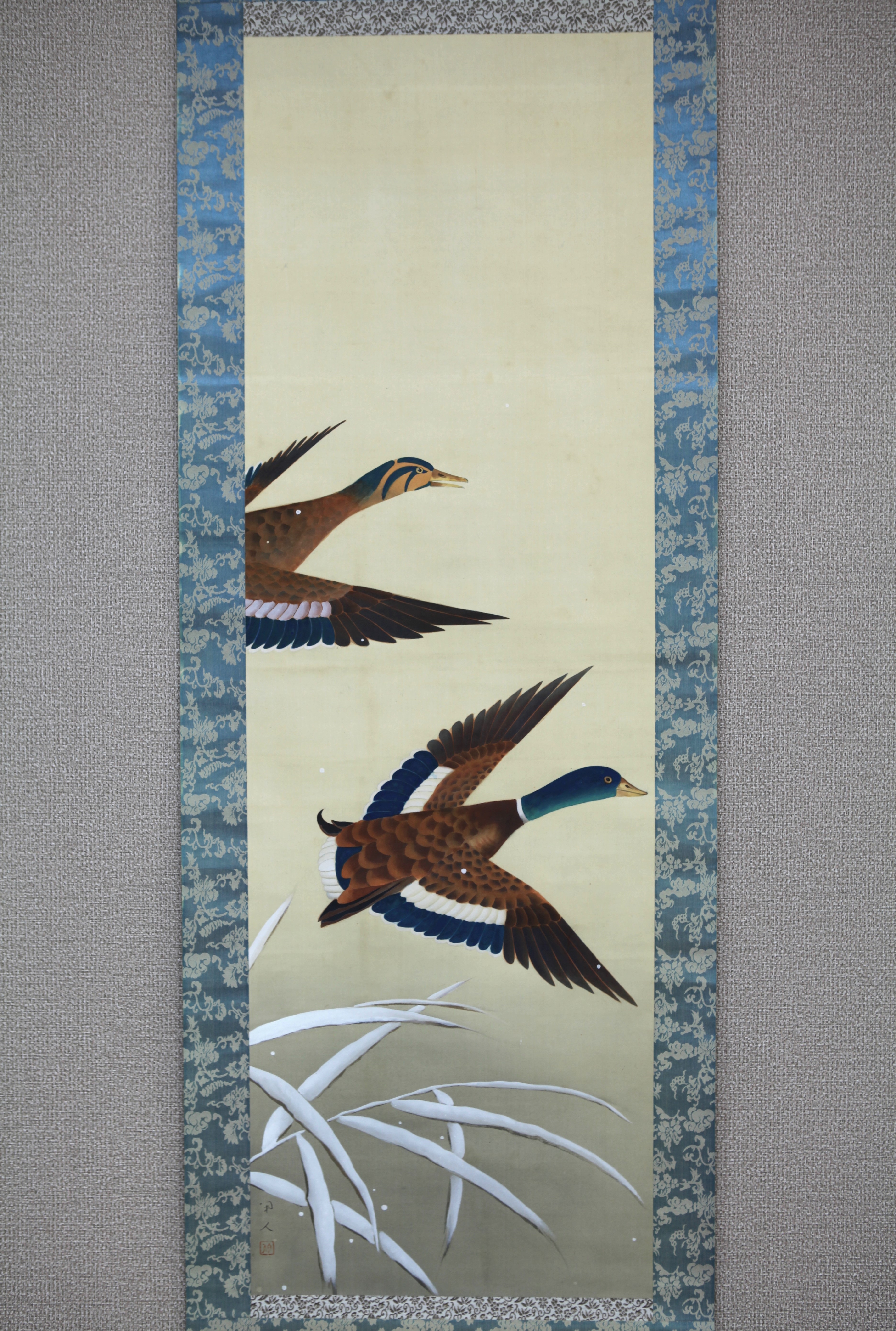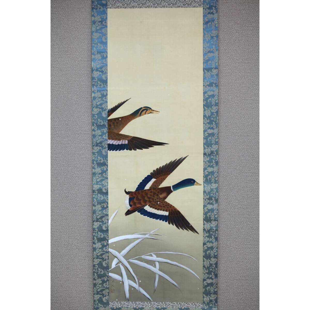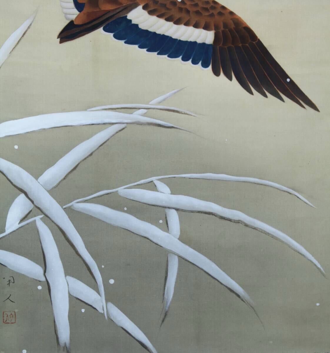 【真作】【風車】 工藤甲人 「芦雁図」◎肉筆絹本◎青森の人 福田豊四郎に師事 東京芸大教授 芸術選奨 文部大臣賞 毎日芸術賞 | ||||||||||||||||||||