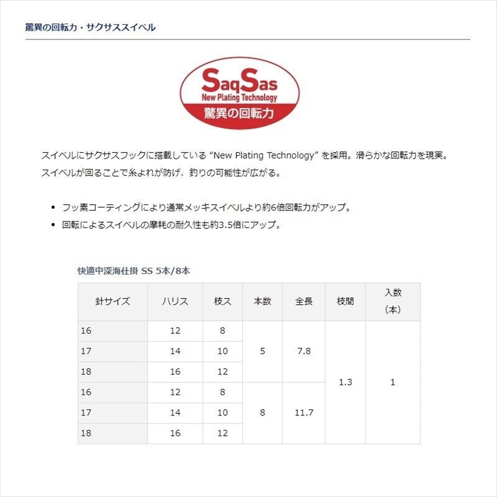 ダイワ 快適中深海仕掛 SS 5本 18-12-16-7.8(da-132612)[M便 1/20]
