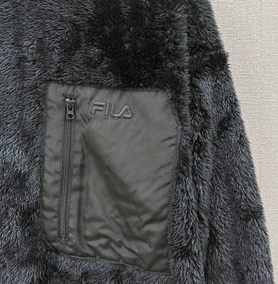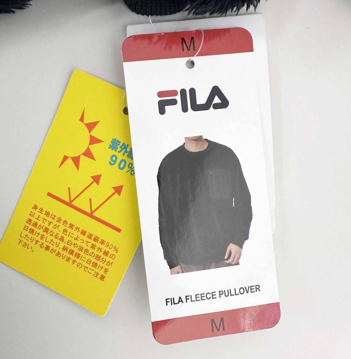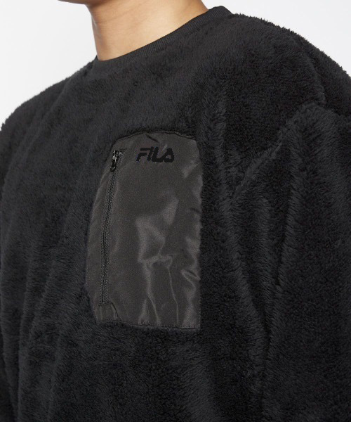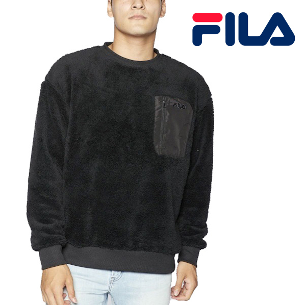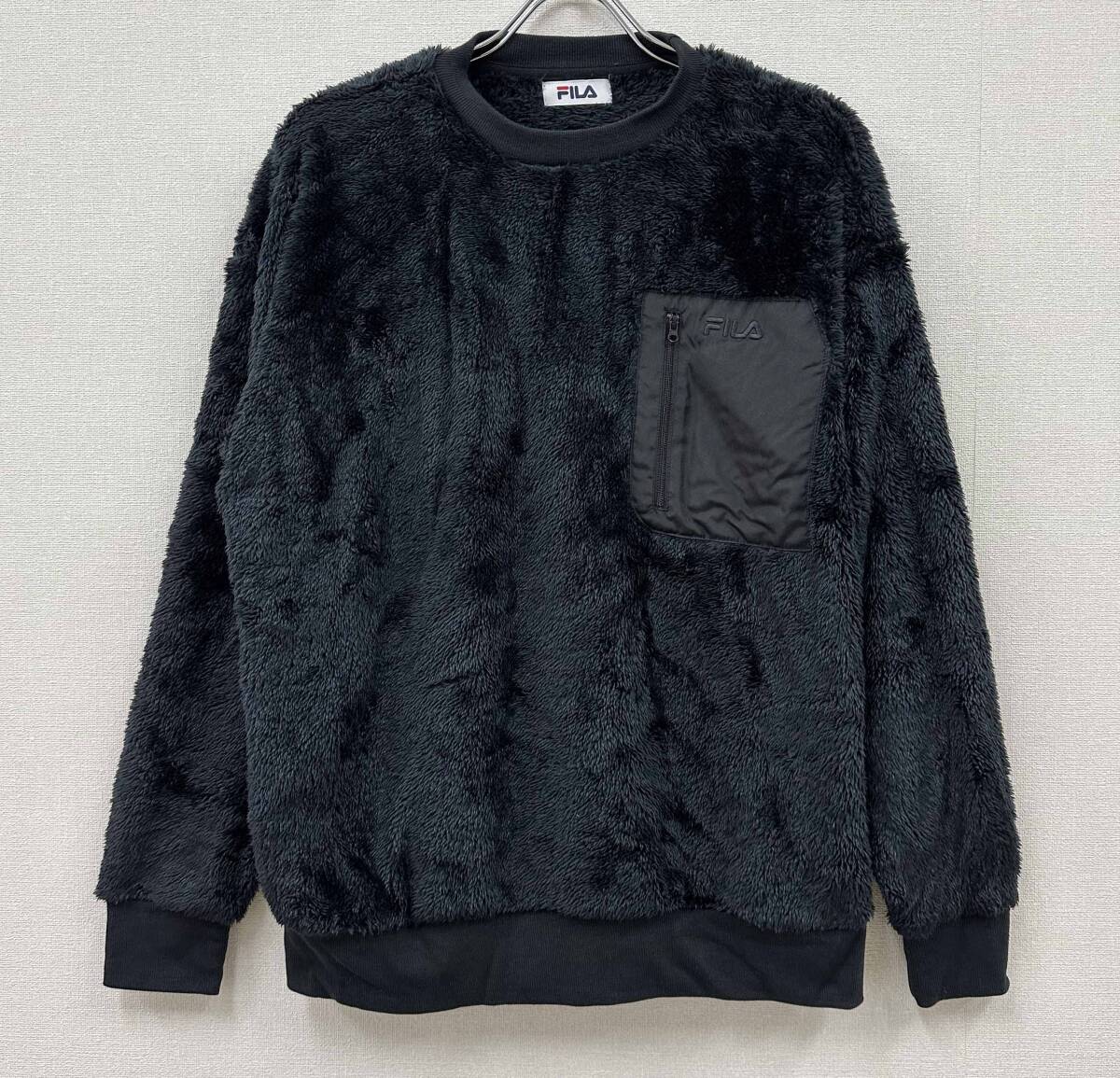 新品 M ★ FILA フィラ メンズ シャギー クルーネック シャツ ボア ブラック ポケット付き レディース 男女兼用 トレーナー トップス 黒