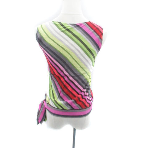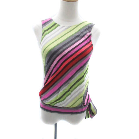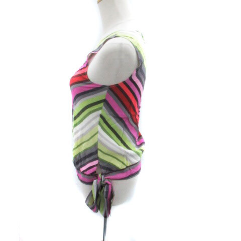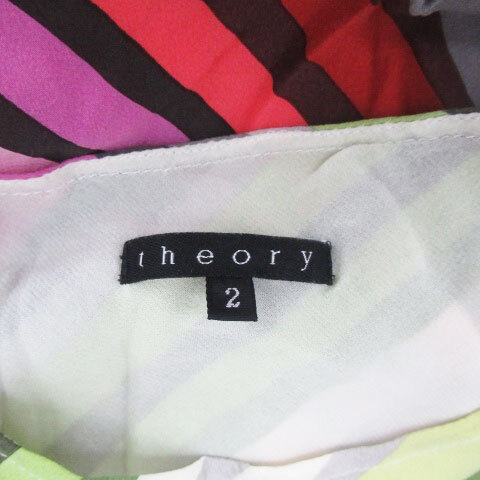 セオリー ブラウス カットソー ノースリーブ リボン ダイアゴナルストライプ柄 シルク 2 M マルチカラー ピンク /HO42 レディース