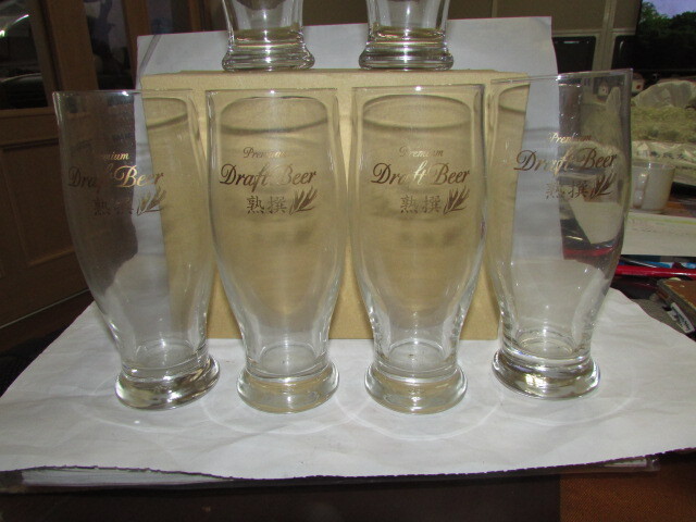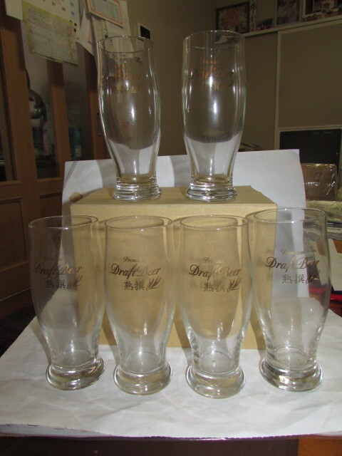 (酒屋・蔵出し)(昭和レトロの未使用プレミアム・ドラフトビ-ル・熟撰グラス・6客)NO1・未使用