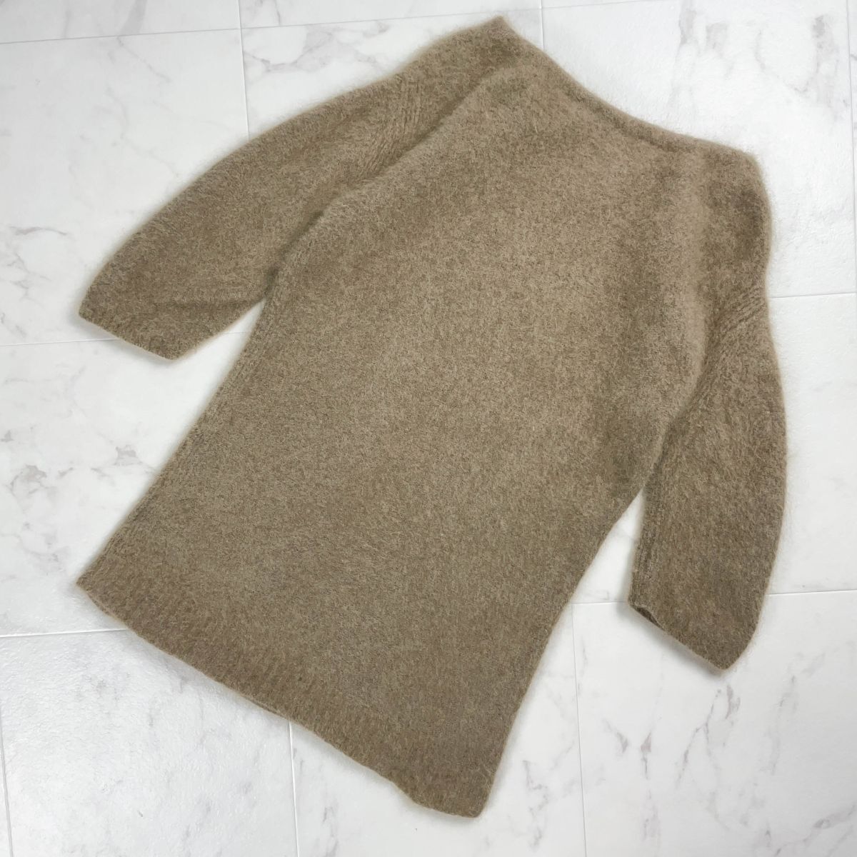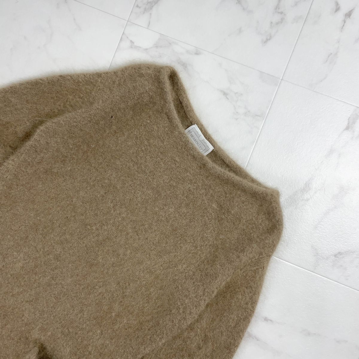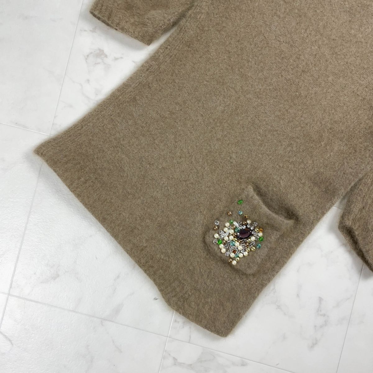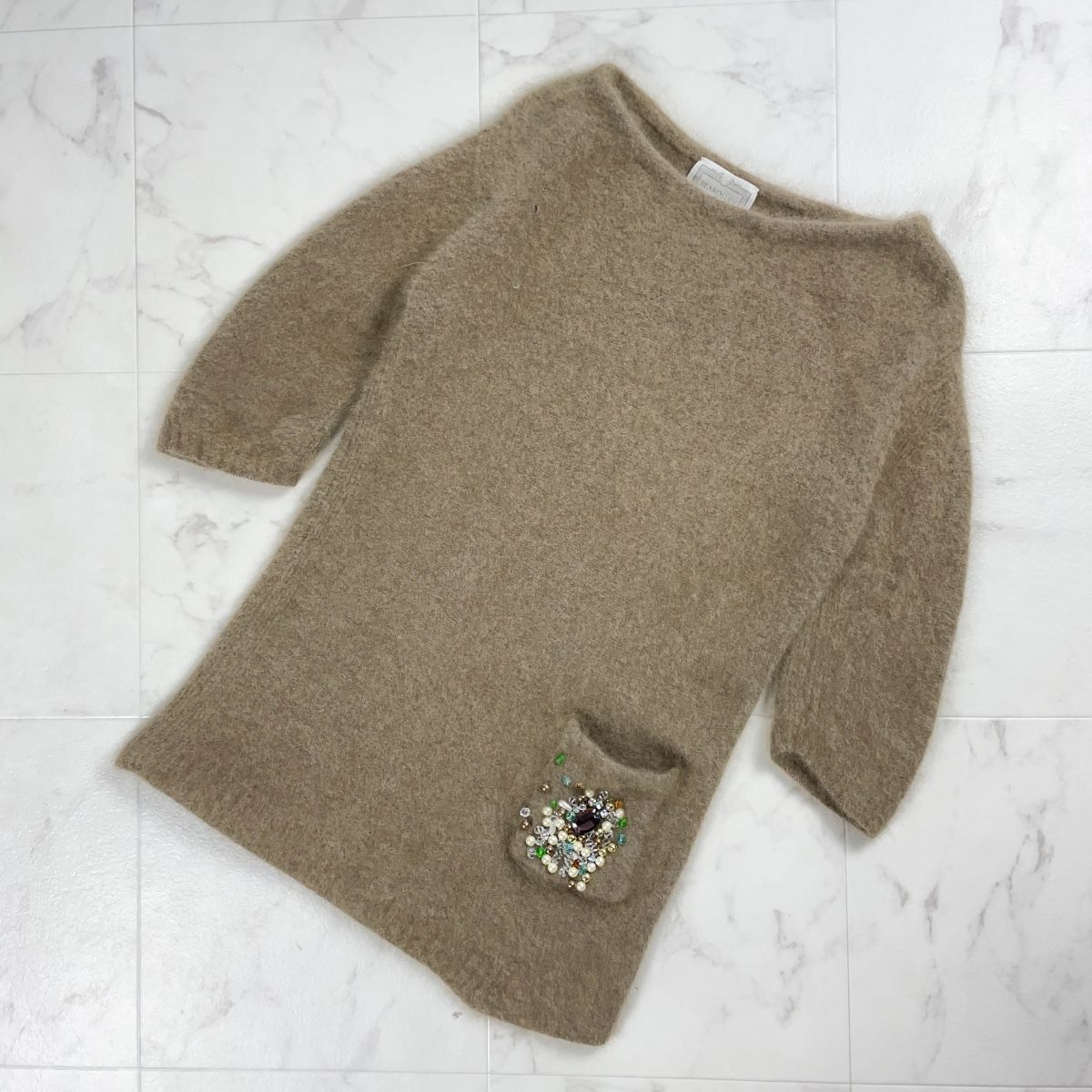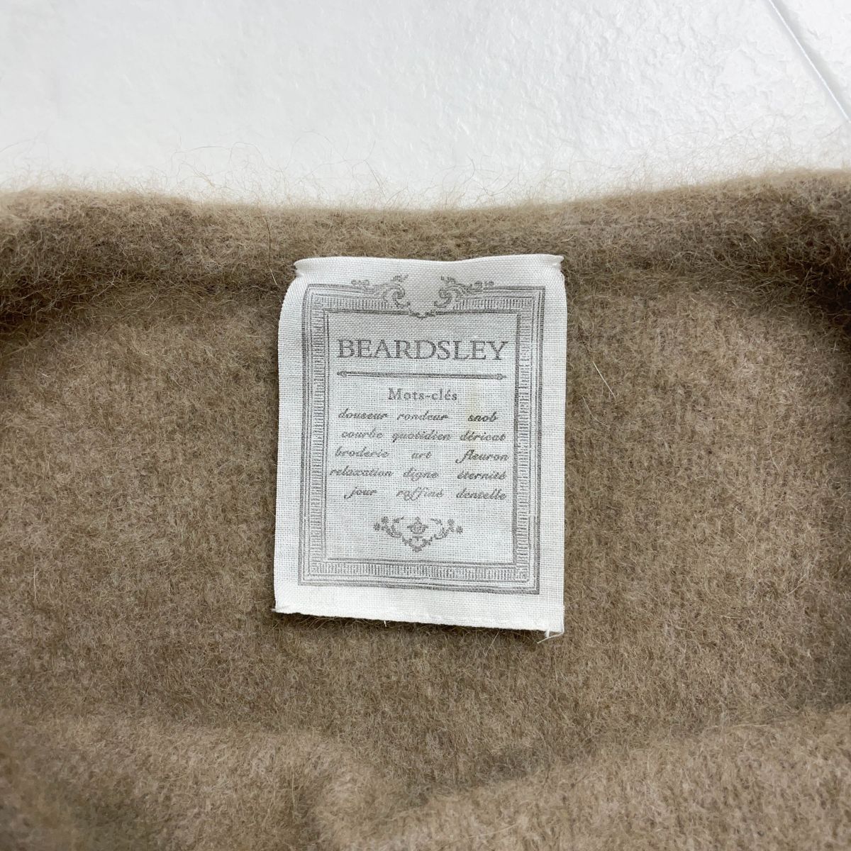 美品 BEARDSLEY ビアズリー フェレット100% ビジュー付ボートネックニットワンピース ベージュ レディース サイズF*YC138