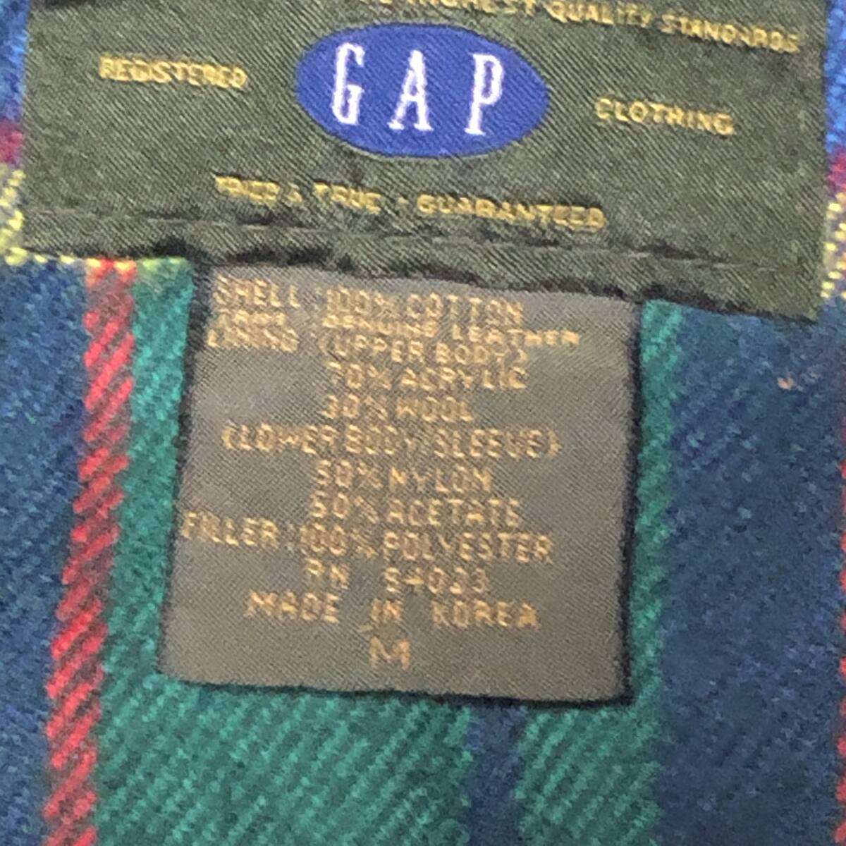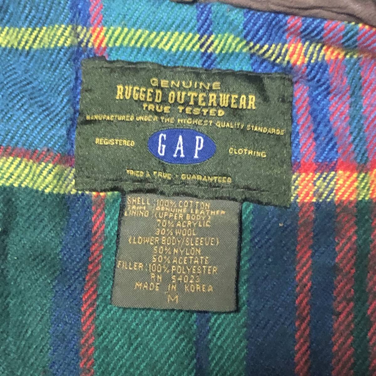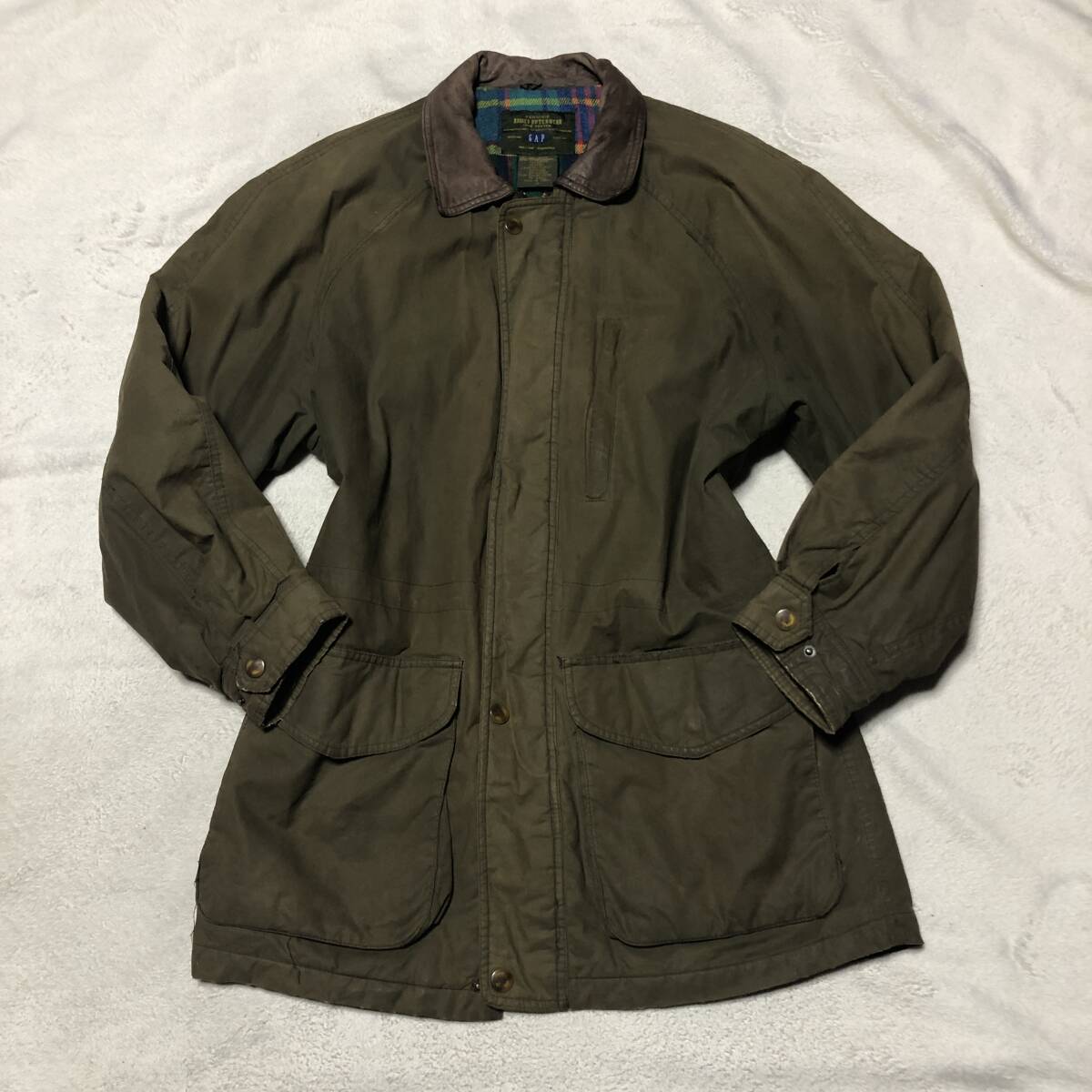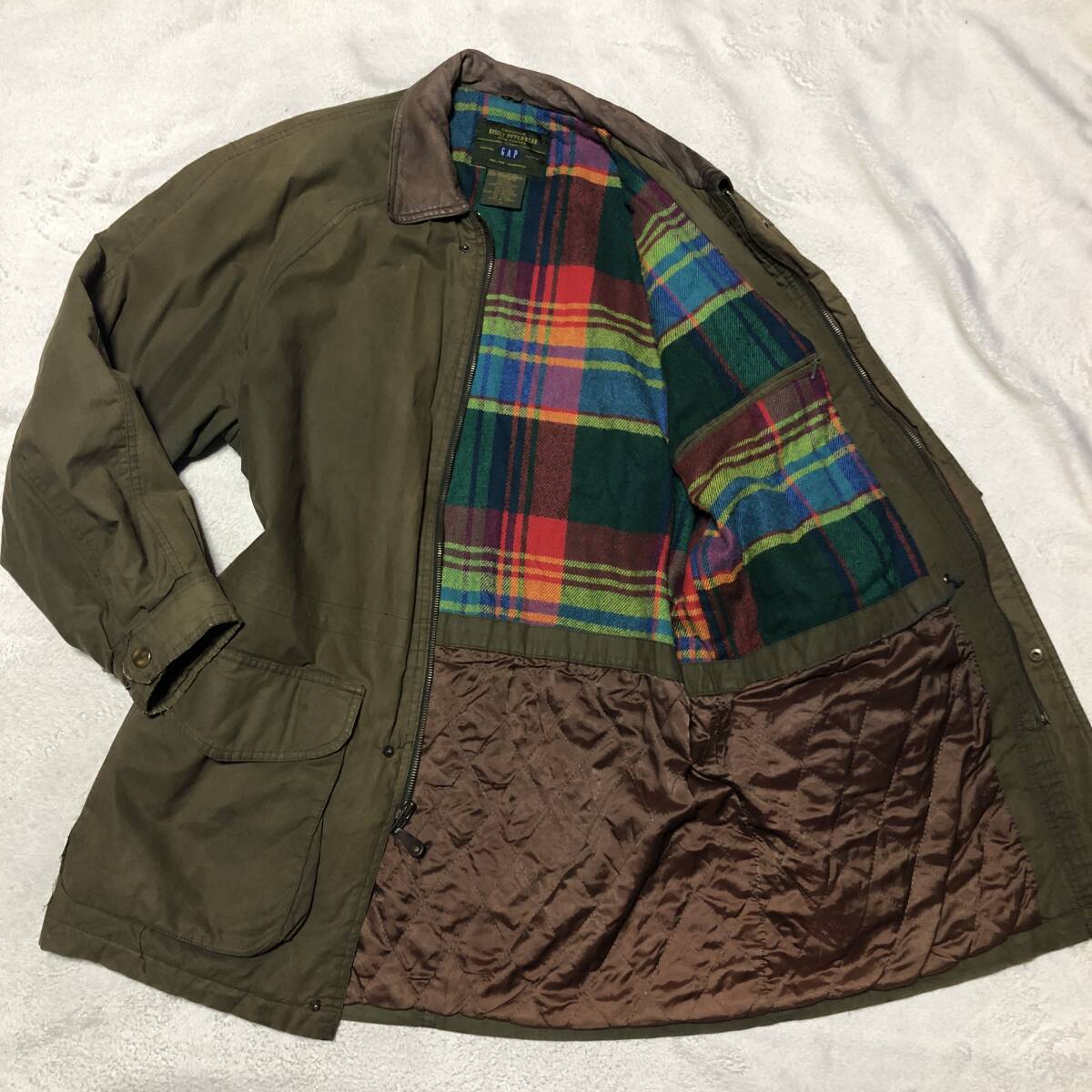 オールドギャップ GAP 90S【人気の大きいサイズ】ワークジャケット 中綿ジャケット フルジップ チェック柄裏地 レザー襟 カーキ Mサイズ