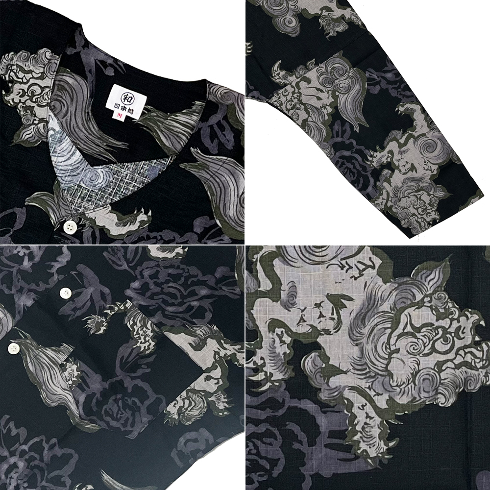 お祭用品/肉襦袢 まるわ日本橋 鯉口シャツ 唐獅子 [R2503-10黒鳶] 2号(子ども用)