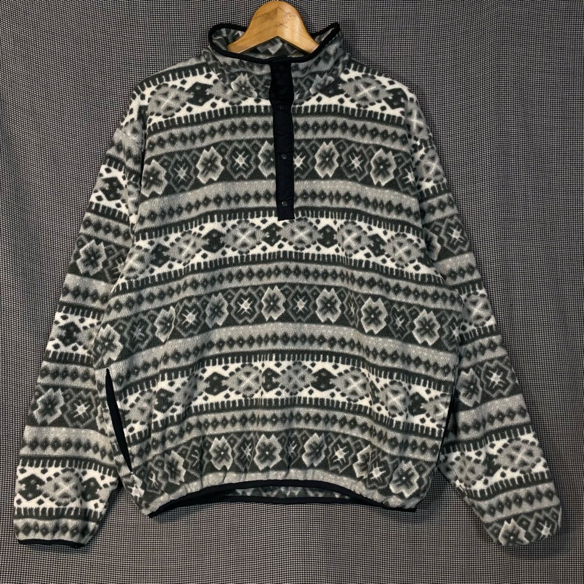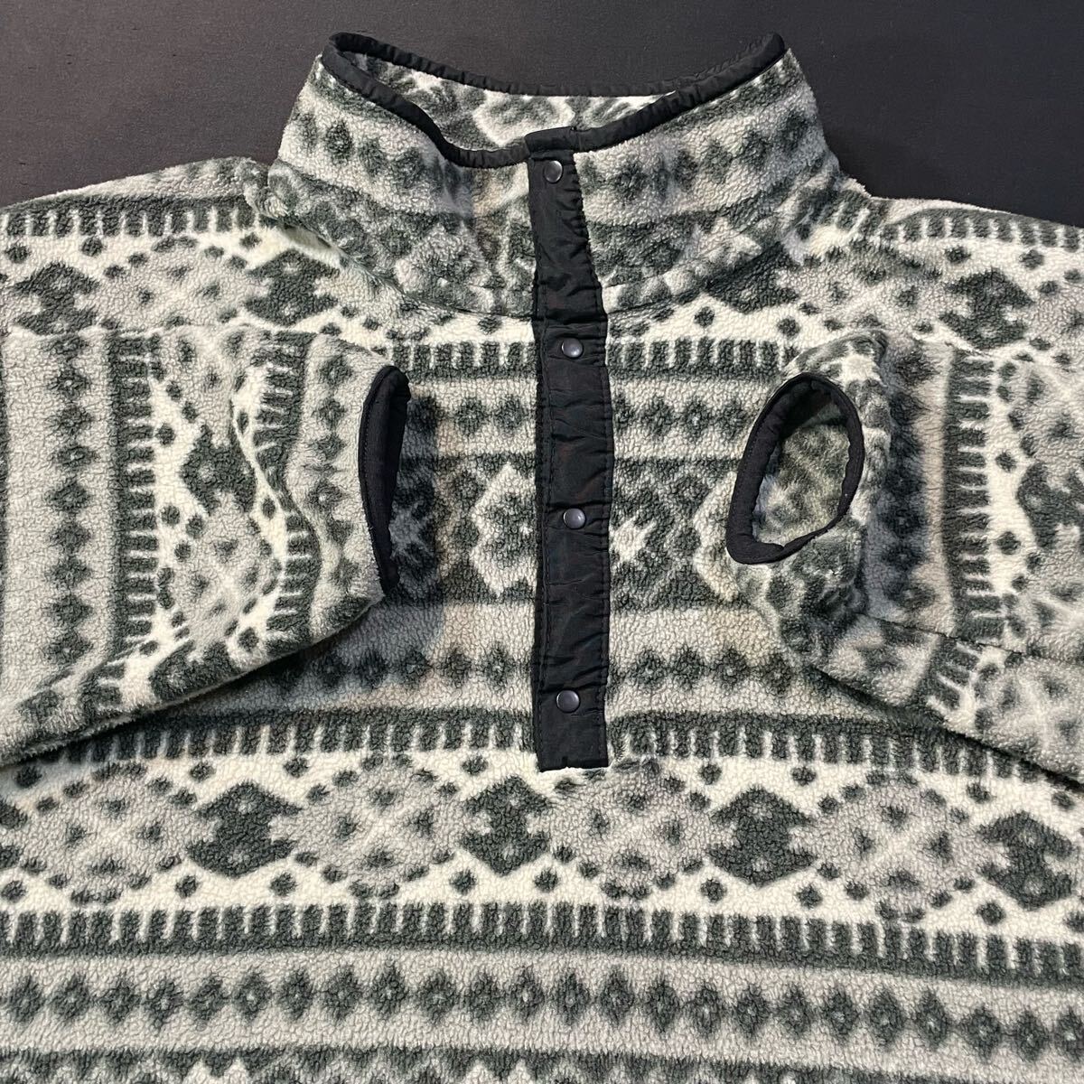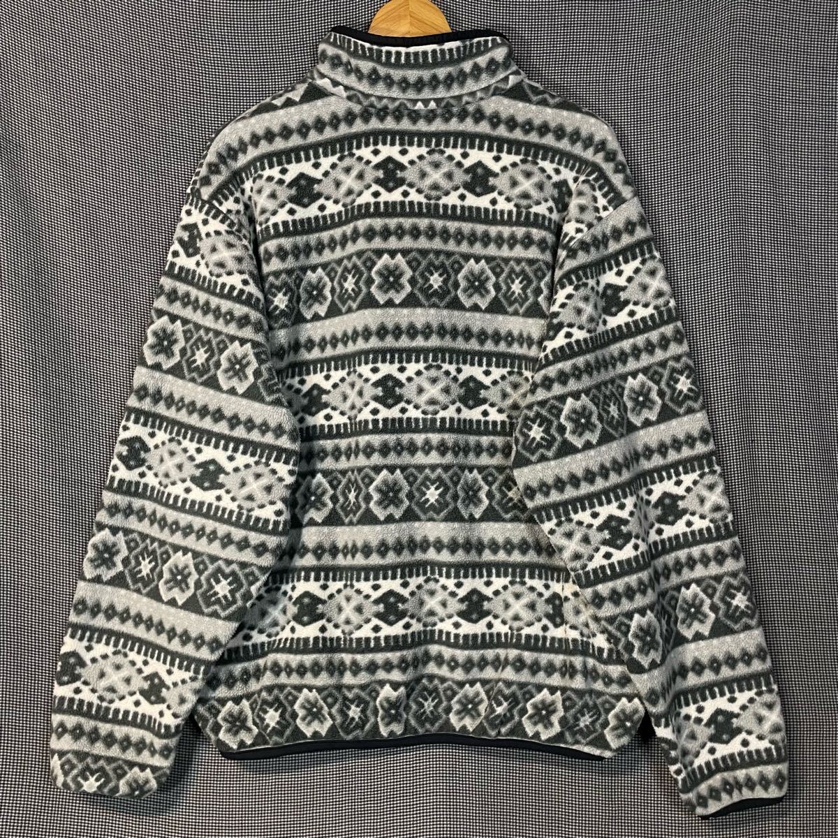 80s L.L.Bean 総柄 ハーフボタン フリースジャケット エルエルビーン  80年代 ビンテージ ネイティブ柄 ノルディック柄 スナップT 柳10802
