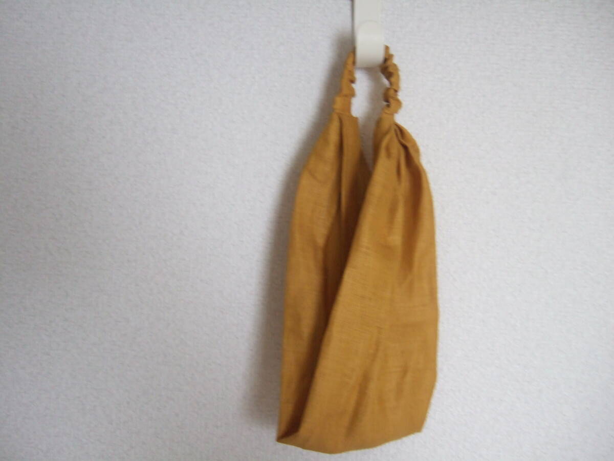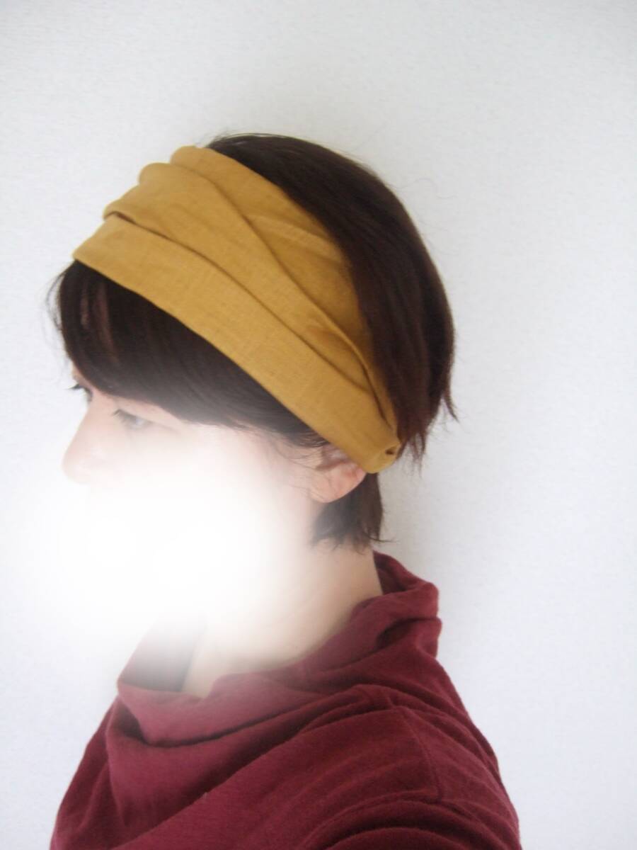 ★即決★ハンドメイド 艶っとソフトリネン アンティークゴールド ゆるターバン**ヘアバンド コーデのアクセントに カチューシャ