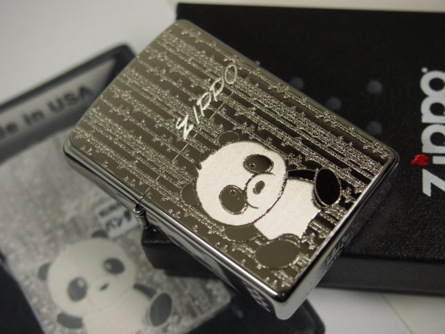 ★Zippo パンダ、ホワイトニッケル仕上げベースに、パンダのデザインがメタルプレート(彫刻)された美しい逸品です。
