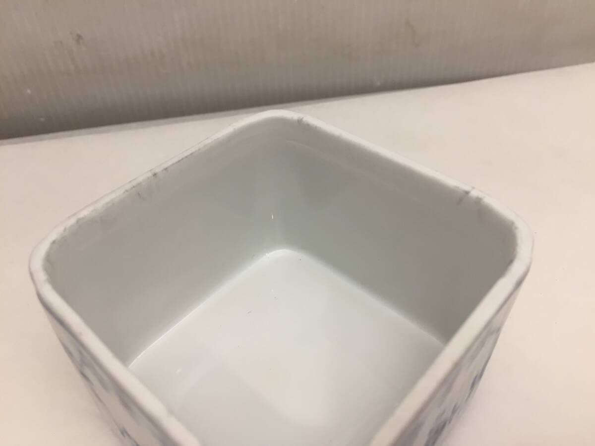 縦:約7㎝ 横:7㎝ 高さ:約6cm 口の部分にスレによる汚れがみられます。画像7 底にスレ傷がみられます。画像8 フタに一部にわずかに汚れがみられます。画像9 | ||||