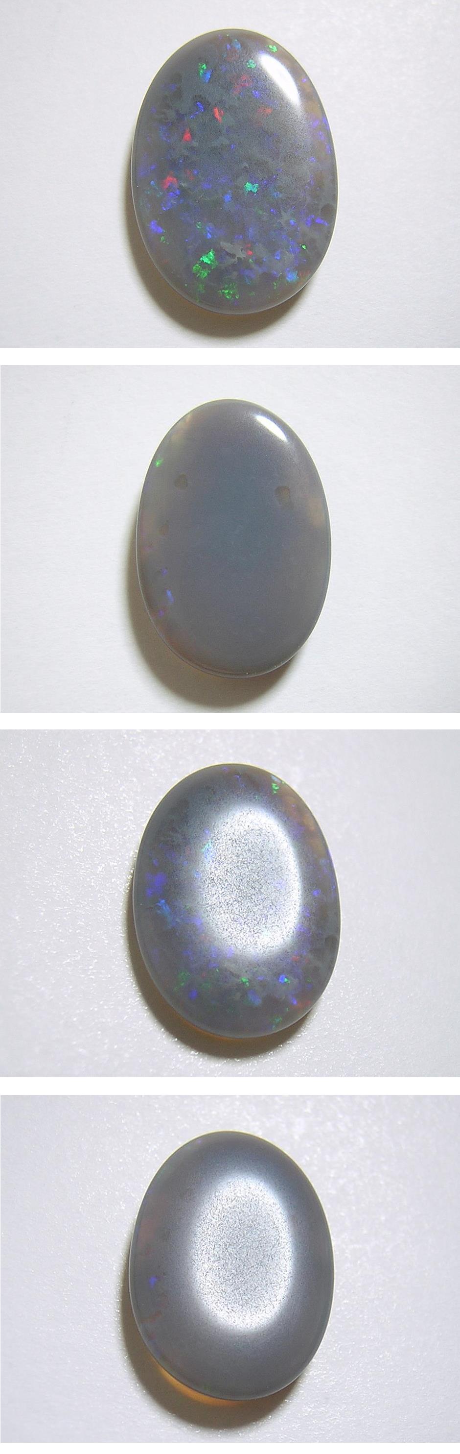 ライトニングリッジ産の天然セミブラックオパールのルースです。 表面に細かなキズがついてしまっていますので、画像でご確認くださいませ。 【石名】天然オパール 【産地】オーストラリア・ライトニングリッジ産 【処理】非加熱 【カット】オーバルカボションカット 【重さ】2.35ct 【サイズ】14.8mm×10.3mm×2.3mm 【状態】USED |