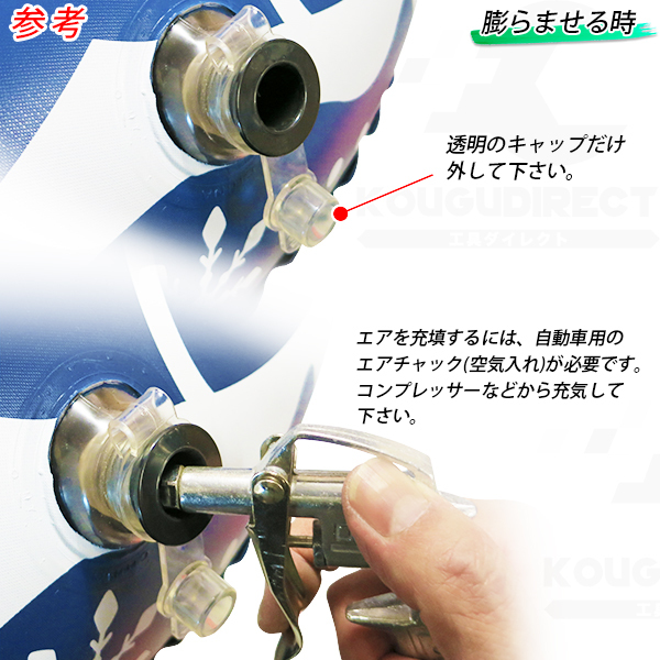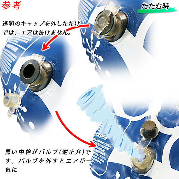 ■ タイヤと違い、加圧しての空気圧計測は出来ません。子供が座ってお尻が雪面に付かない程度に膨らませます。